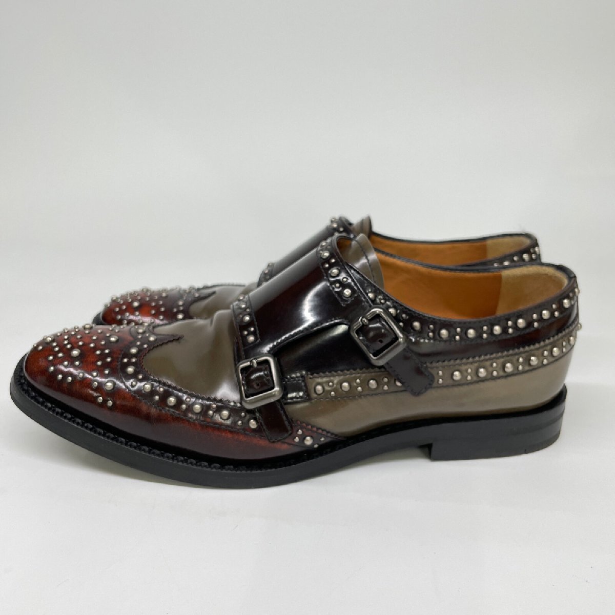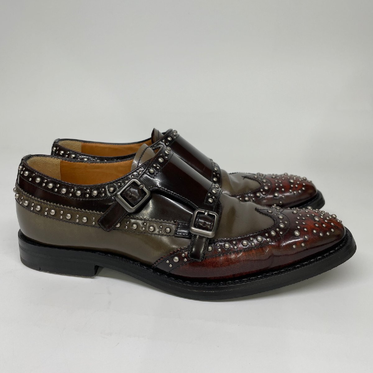 美品 Church's チャーチ DO0031 スタッズ ダブルモンクストラップ シューズ 36 ダークブラウン/カーキグレー レディース