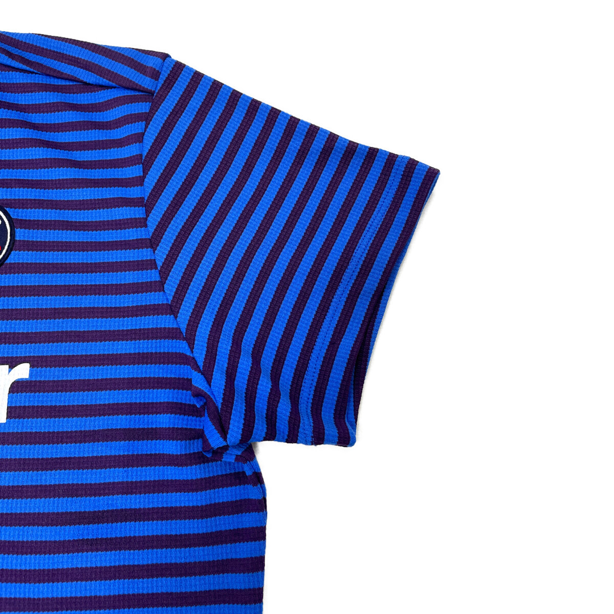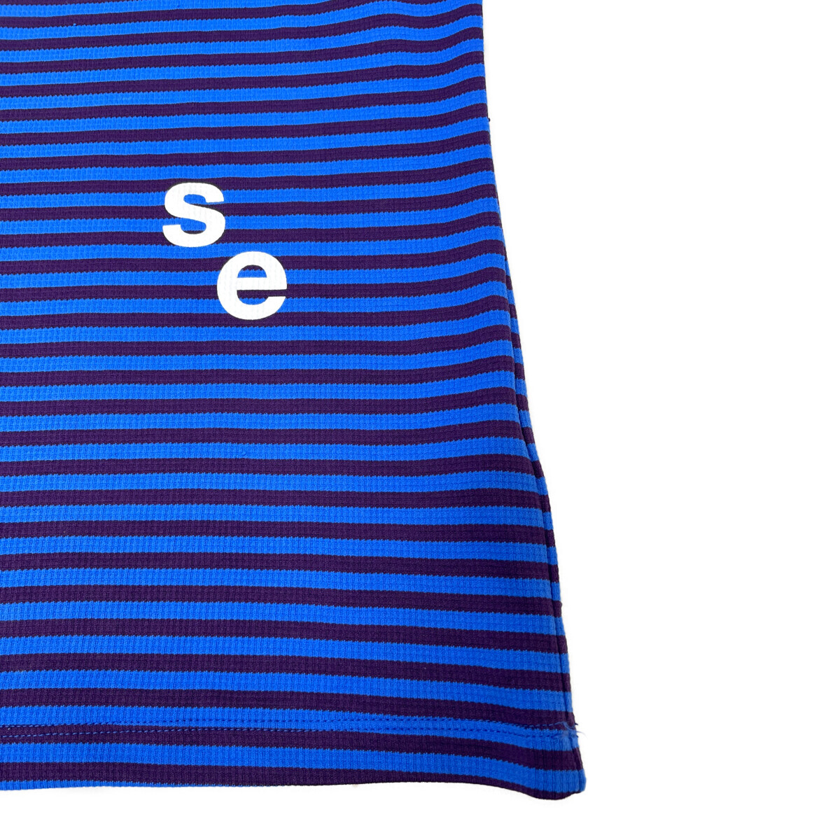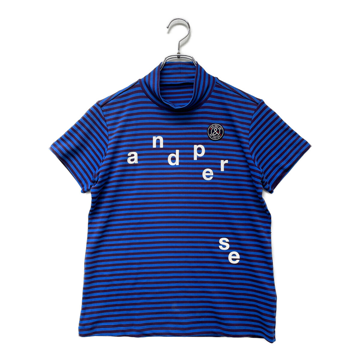 coco 中古【値下げ】 アンパスィ and per se レディース 半袖シャツ L 青系×紫系 モックネック ボーダー ネコパケ発送可 94136