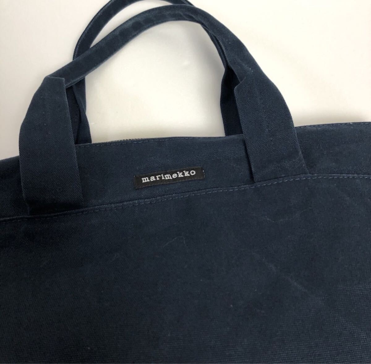 マリメッコ marimekko A25062511 トートバッグ キャンバス ショルダーバッグ ネイビー 良品 2WAY 斜めがけ A4収納