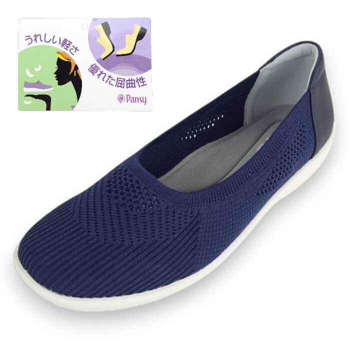 ブランド名:Pansy パンジー 品番:4304 色:ネイビー サイズ:23.5cm 靴の幅:3E EEE スリーイー かかと高さ:約2.5cm 片足重量:約120g(23.5cmで計測した場合) 素材: アッパー(甲)/ポリエステル ソール (底)/合成底 生産国:中国 ・U字型のアーチクッションが踵を包み込むようにフィットして、足裏にかかる衝撃を和らげます。インソールには安全で長期間効果が持続する抗菌防臭加工を施しています。(インソールは取り外し式ではありません) ・足への負担が少ない軽量設計EVAコンプレッションソール。足の動きに合わせて柔軟に曲がるので歩きやすく、長時間履いていても快適に過ごしやすいです。グリップ力に優れたゴム素材を接地面に取り付け、安定感のある歩行が期待できます。 軽くてシンプルでおしゃれなデザインなのでご家族やご友人へのプレゼントにも喜ばれそうです! | ||