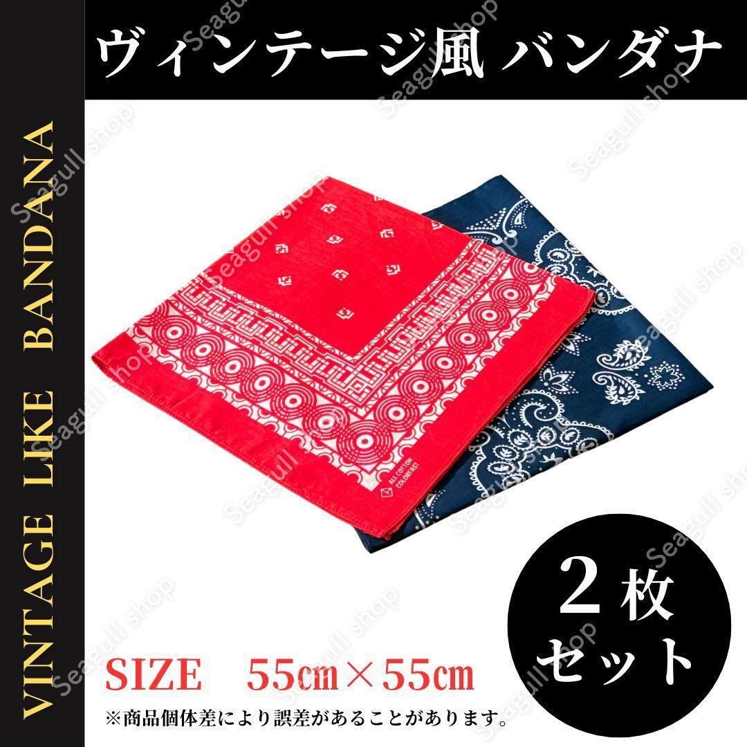 こちらは、ヴィンテージ風のデザインが魅力の【綿100%バンダナ】2枚セットです。