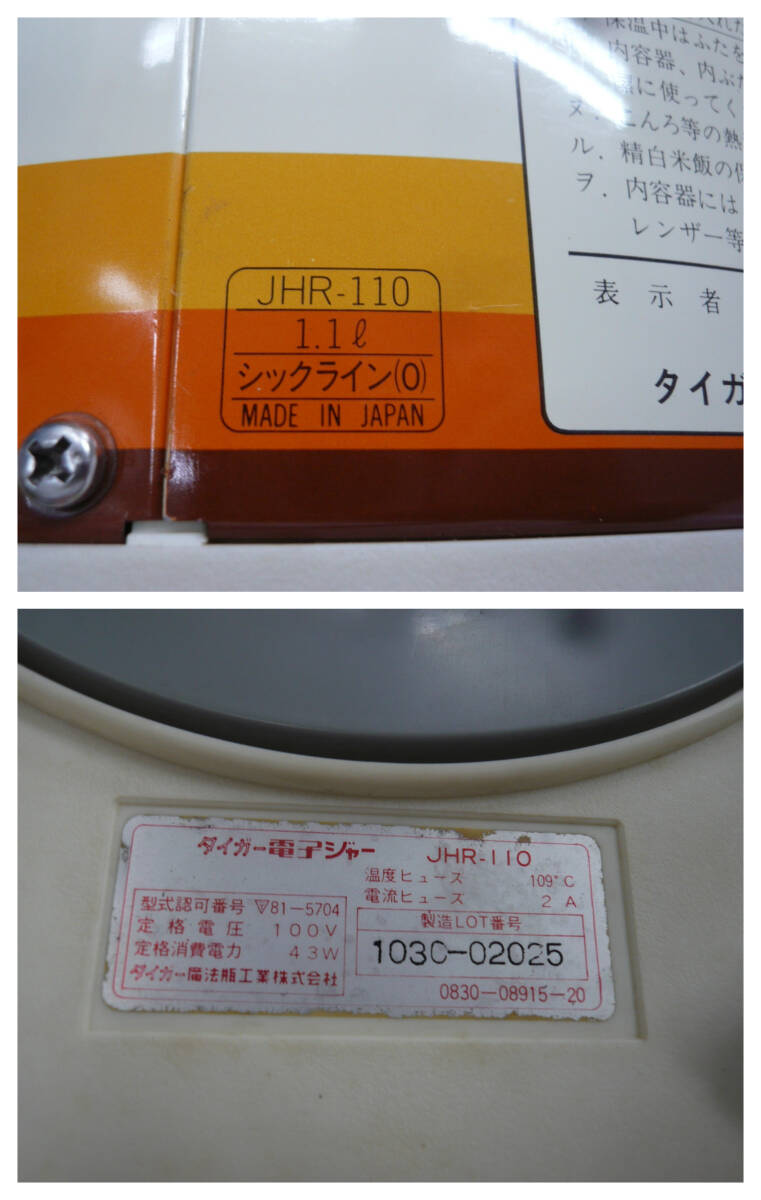中古レトロ タイガー電子ジャー(保温専用)JHR-110 1.1L【N-234】 送料無料(北海道沖縄・離島・佐川急便中継料金がかかる地域は除く)
