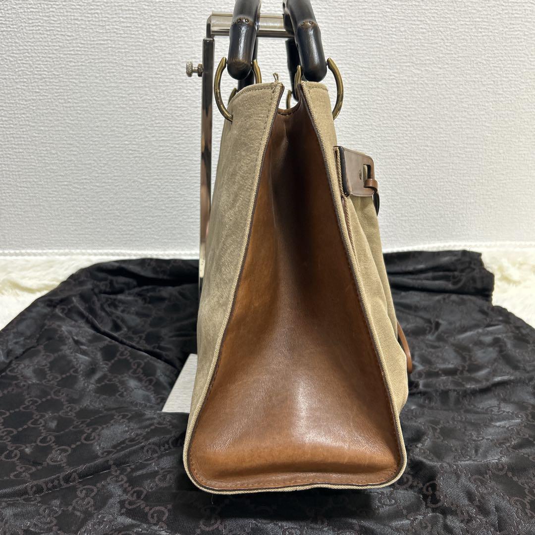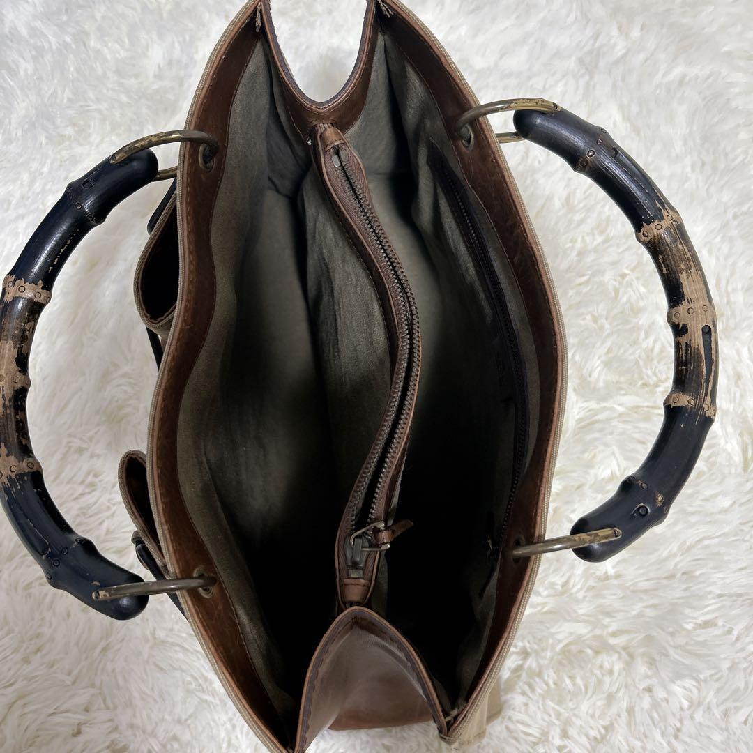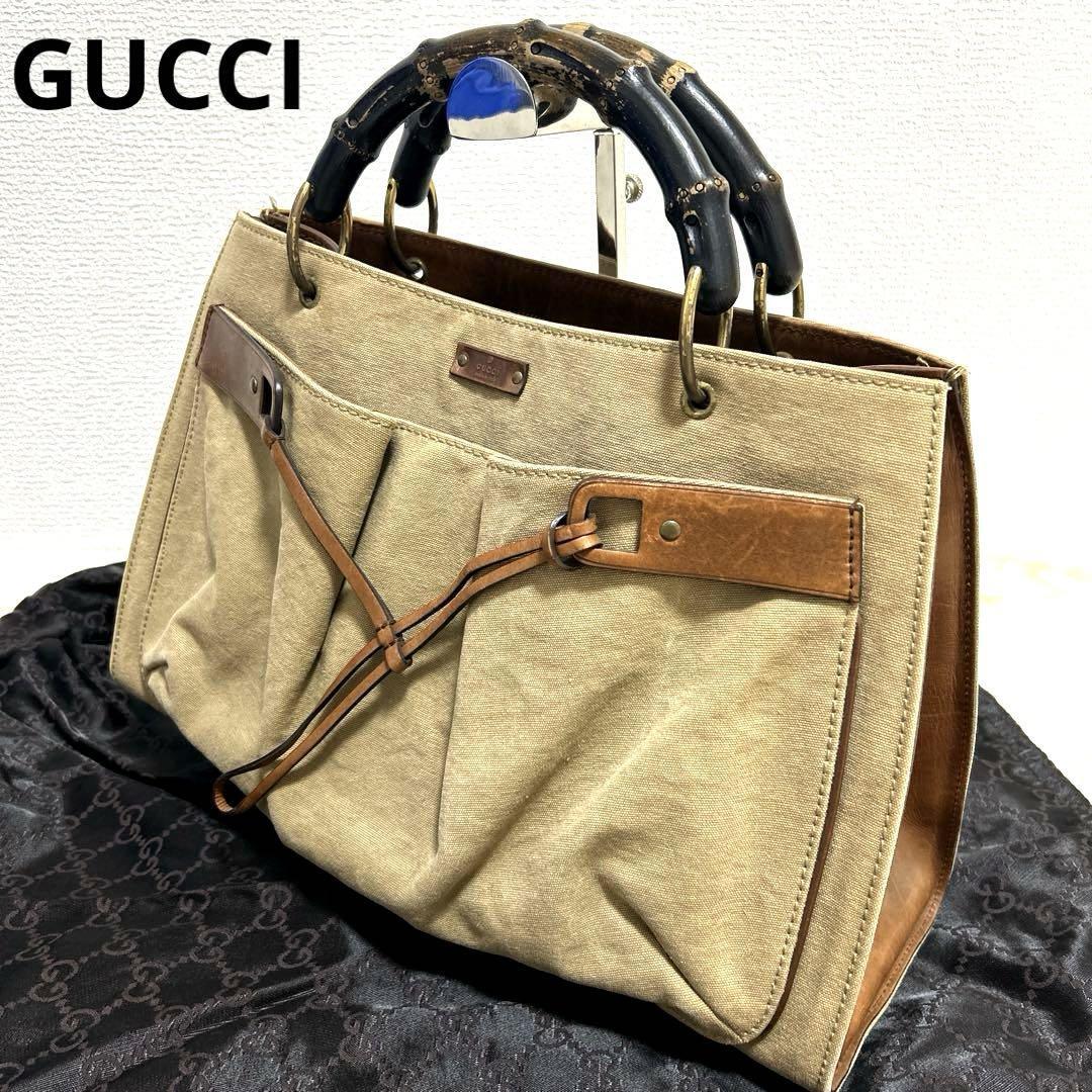 GUCCI グッチ バンブー トムフォード期 レザー キャンバス 切替 ベージュ ビンテージ VINTAGE ヴィンテージ 年代物