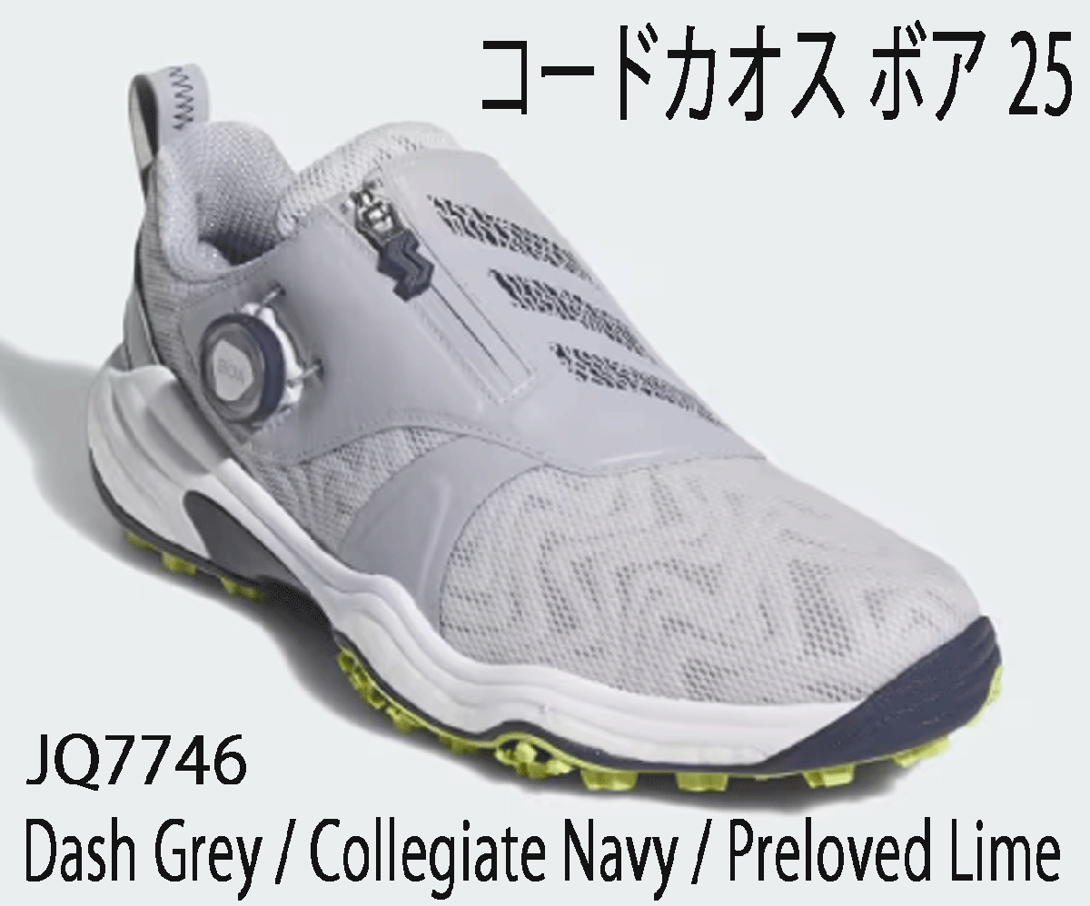 新品■アディダス■2025.7■コードカオス-25-ボア-スパイクレス■JQ7746■グレー/ネイビー/ライム■25.0CM■グリップ力が最大40%向上■