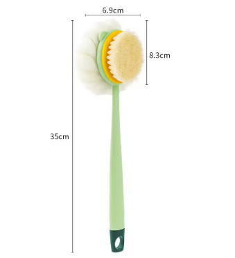 Loofah-長いハンドル付きの女性用ゴムブラシ,ソフトメッシュスポンジ付きのボディブラシ,角質除去バスマッサージ 色: yushua-lvse