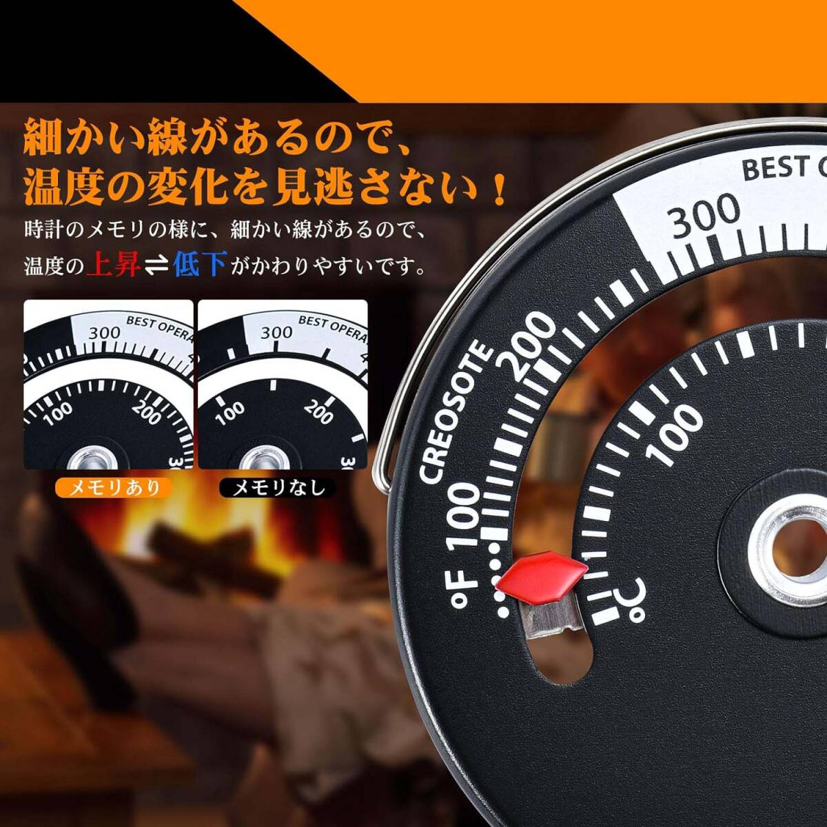 【広い測定範囲】ストーブ温度計はすべてのストーブ、薪ストーブの暖炉に適用いたします。安全な温度目盛りはストーブの過熱によるストーブや扇風機の損傷を防ぐことができます。温度計の範囲は0-500℃で、広い範囲の温度を測定でき、非常に実用的です。