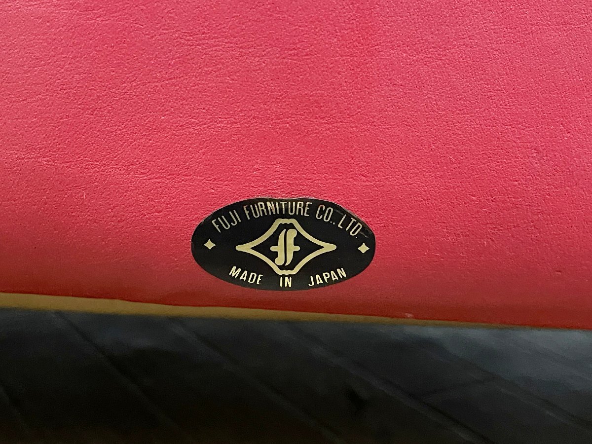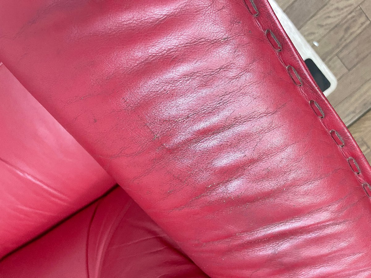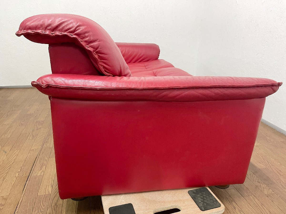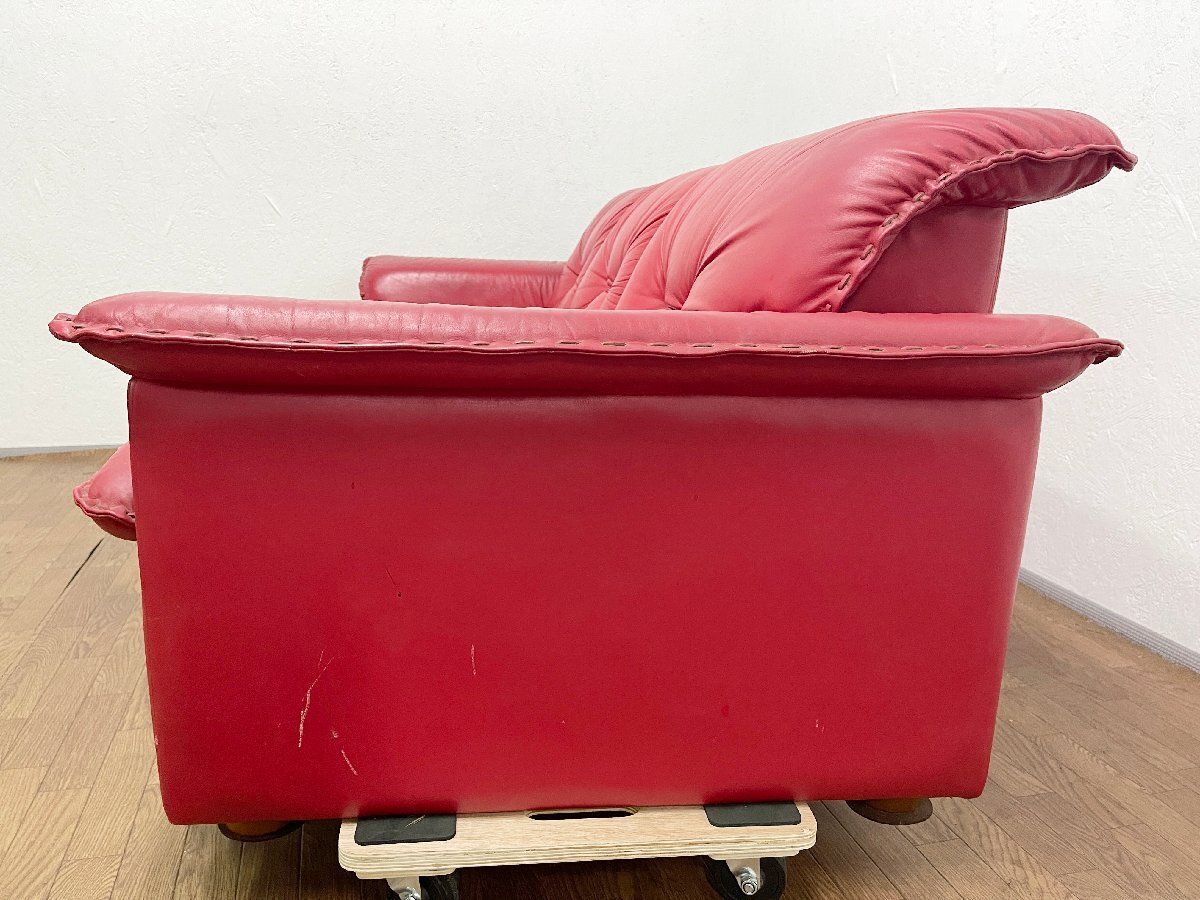 ◆富士ファニチア 3人掛けソファ 本革 3P ヴィンテージ トリプルソファ 腰掛 アームソファ 赤 レッド 家具 インテリア 応接椅子 (貝1100)
