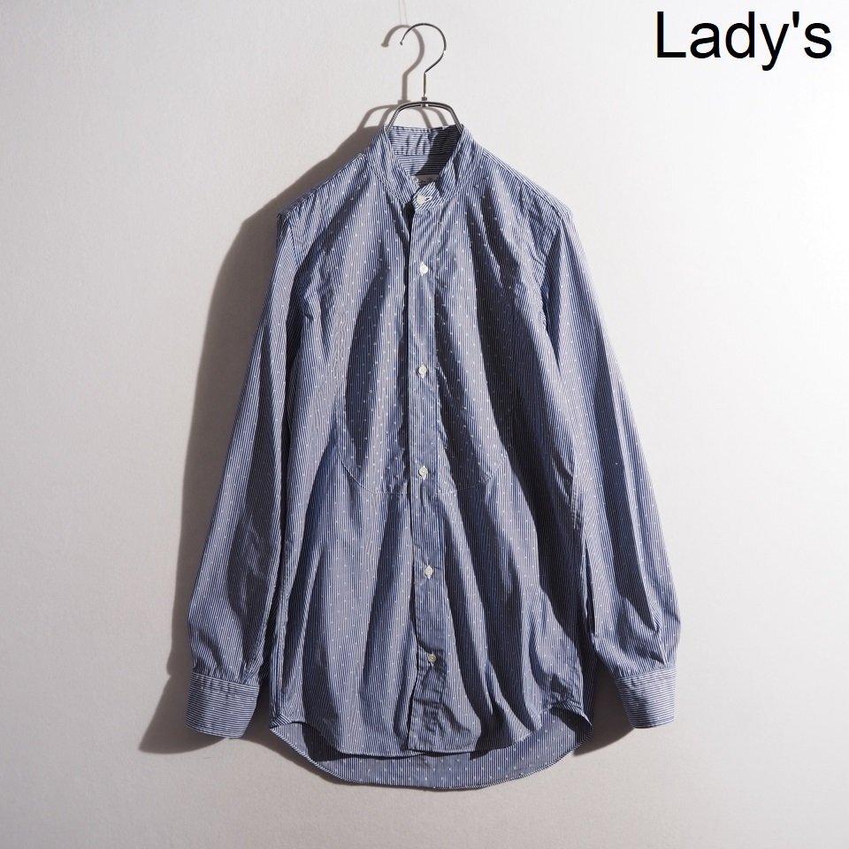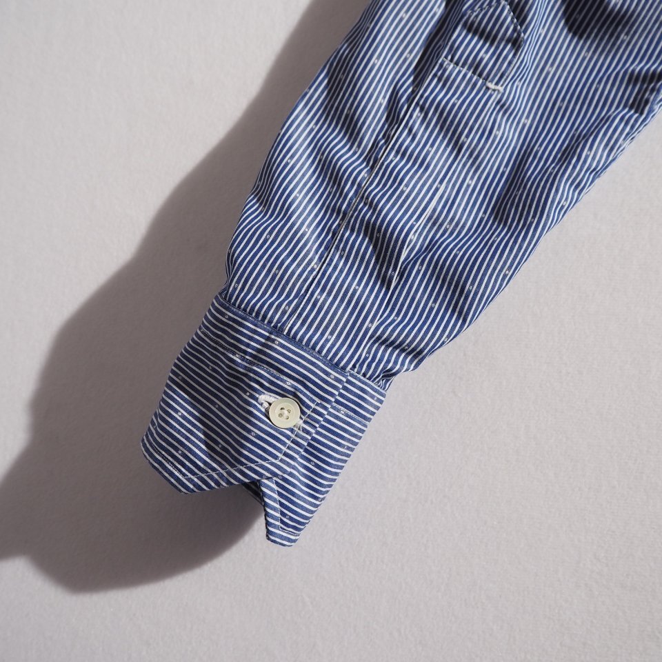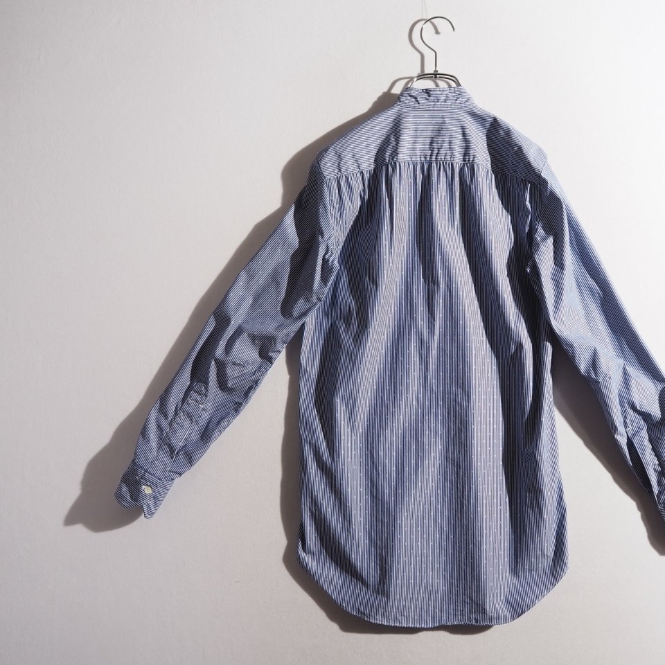 ドビーストライプコットン スタンドカラー ブザムシャツ ネイビー 40