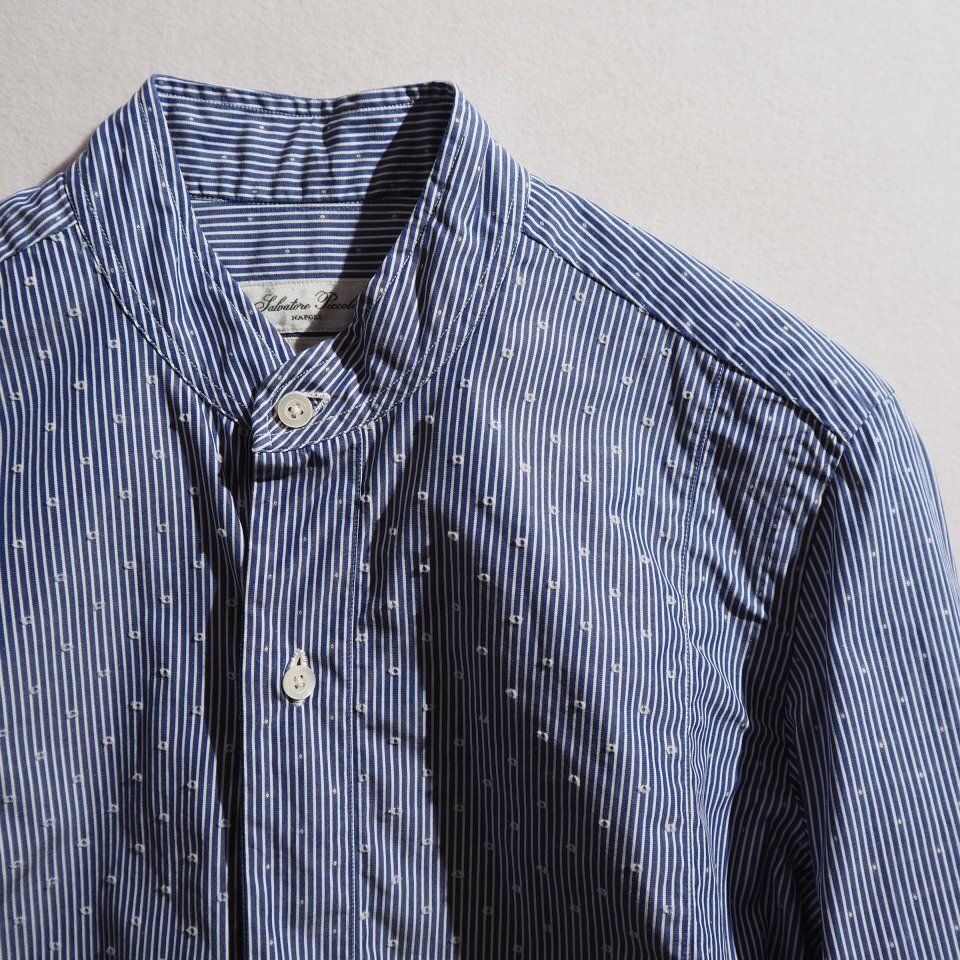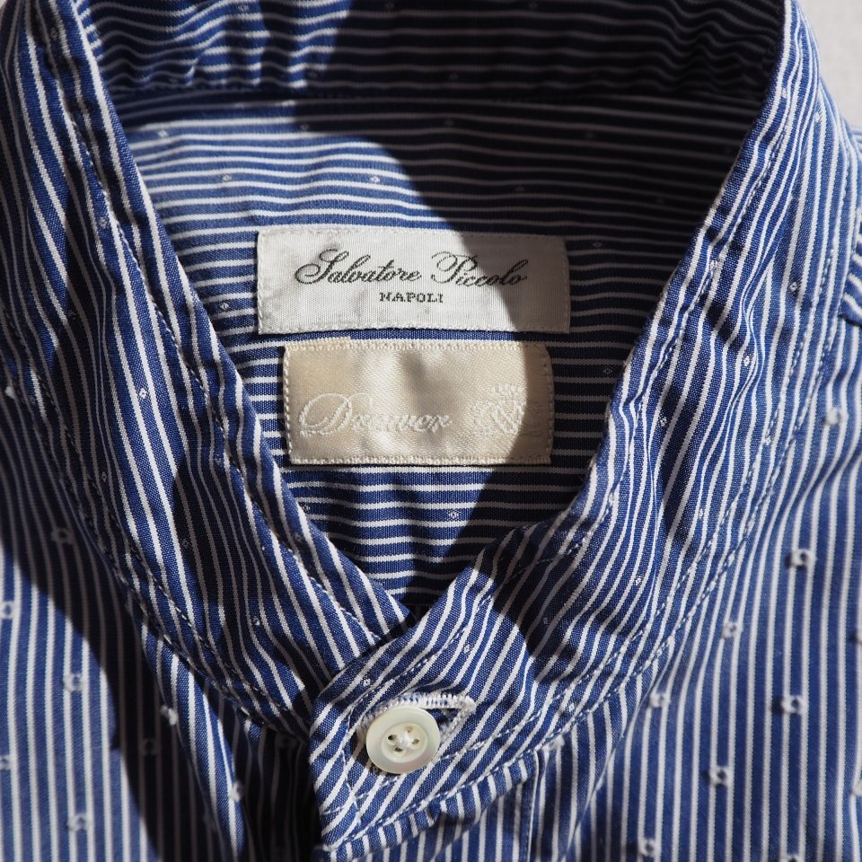 P4862P▼Salvatore Piccolo サルヴァトーレピッコロ × Drawer ドゥロワー▼ ストライプ スタンドカラー ブザム シャツ ネイビー 40 rb mks