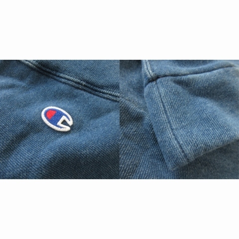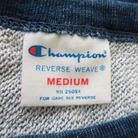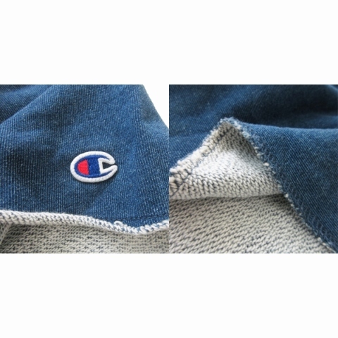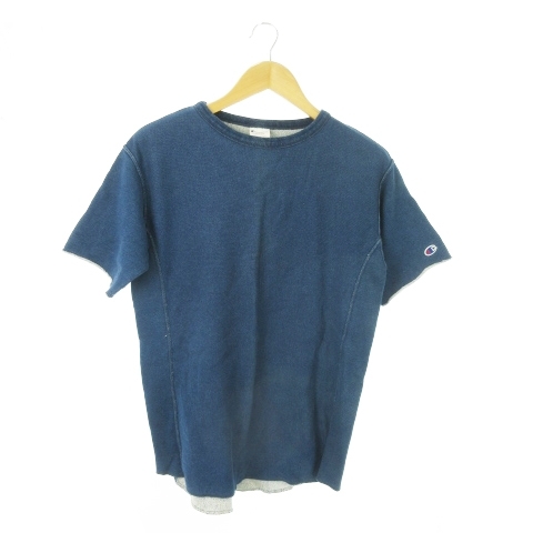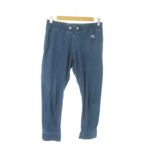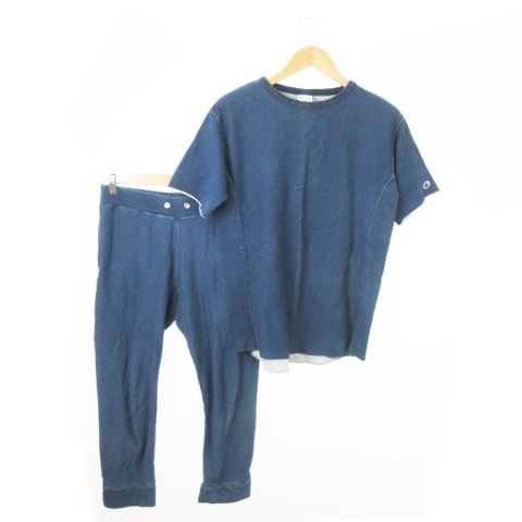 チャンピオン CHAMPION セットアップ 2点セット スウェット トレーナー 半袖 パンツ クロップド ロゴ 裏毛 リバースウィーブ M 青