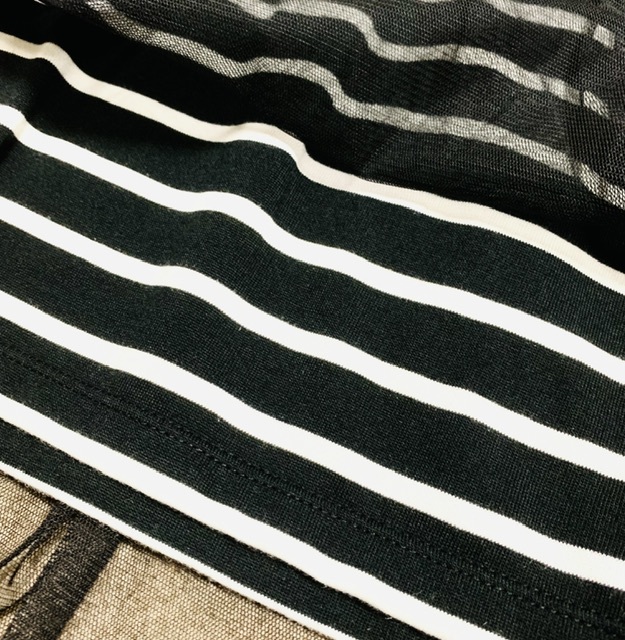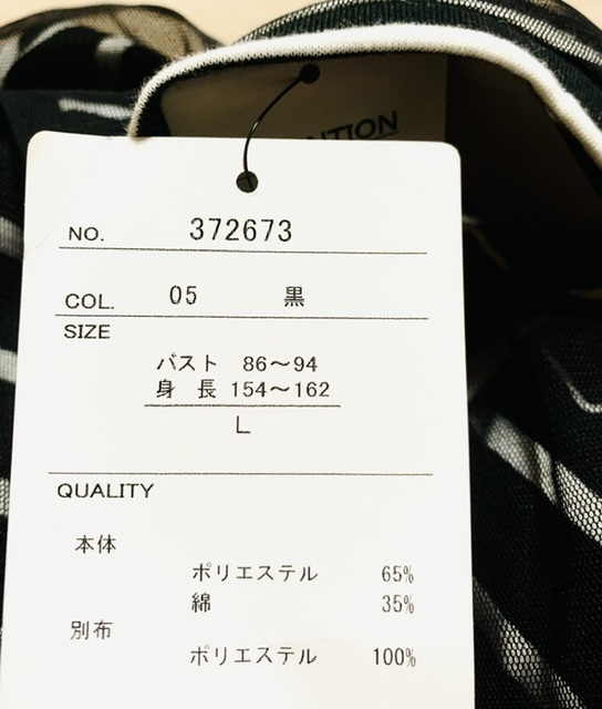 未使用★ タグ付★ オーバーチュールカットソー 黒 L コーデTシャツ 重ね着調 Tシャツ部分イン可 自宅洗濯可 ボーダー 自宅保管