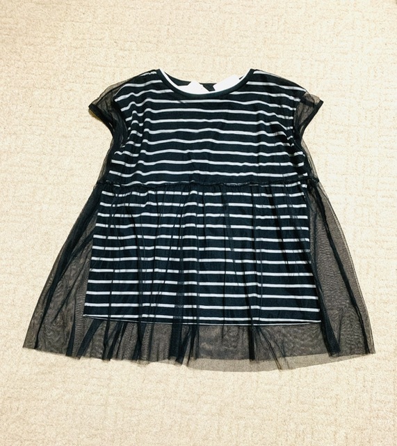 未使用、レイヤード風、黒のオーバーチュールカットソー!Tシャツ部分だけボトムにインしてもかわいいです!高めの切り替えで脚長見え、自宅洗濯可が嬉しいです!(画像、説明など全てHPより引用)現状発送、画像、説明欄などよくご確認下さい
