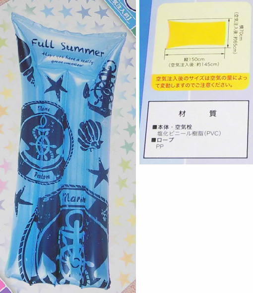 | 1シーズン2回ほど、2シーズンくらい使用しました。 目印にマジック書きがあります。 それ以外は比較的キレイです。 ☆ 定価 1,922円(税込) ☆ マリン ☆ サイズは、約150×70cm ☆ 対象年齢15歳以上、保護者同伴の場合:6歳以上 ☆ 2気室 ☆ ロープ付き AIR MAT | ||