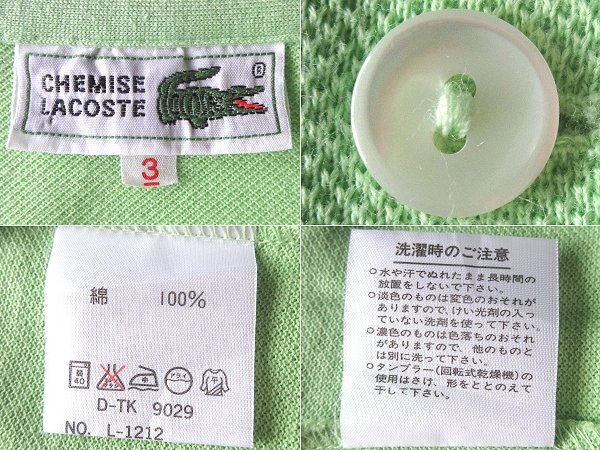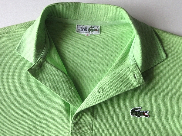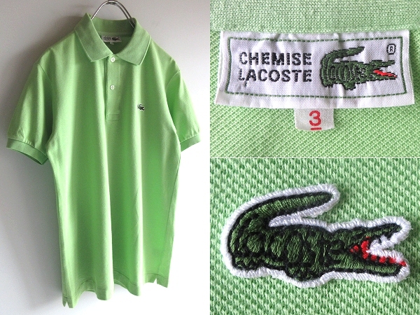 希少 80sビンテージ LACOSTE ラコステ ビームス別注元ネタロゴ 文字ワニ L-1212 鹿の子ポロシャツ 3 ライトグリーン 大沢商会 ネコポス対応