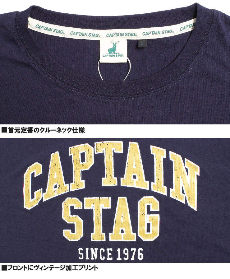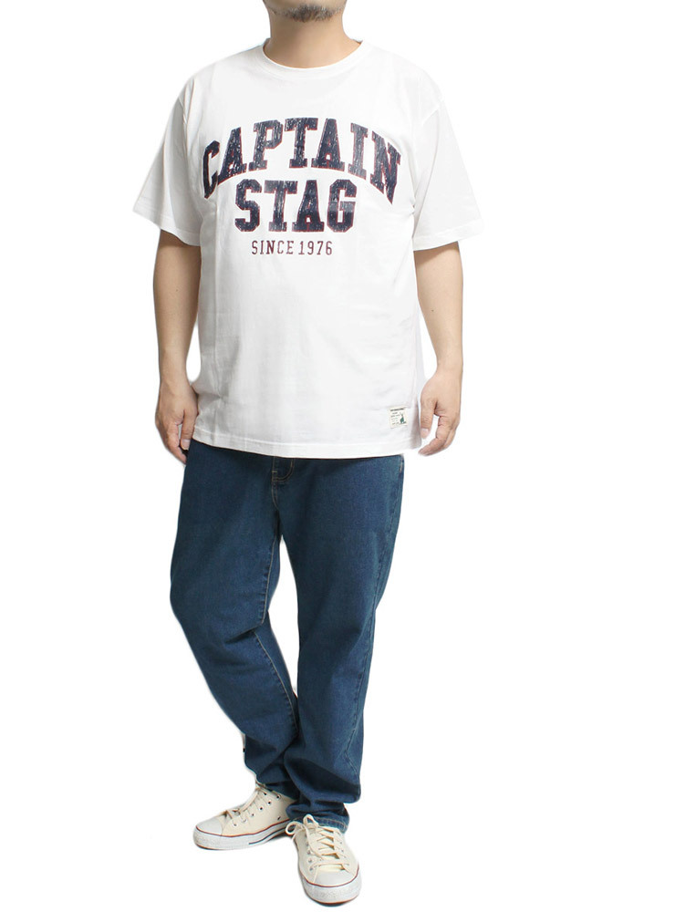 | 商品名 | 【新品】 4L ホワイト CAPTAIN STAG(キャプテンスタッグ) 半袖 Tシャツ メンズ 大きいサイズ ビンテージ風 ロゴ プリント カットソー |