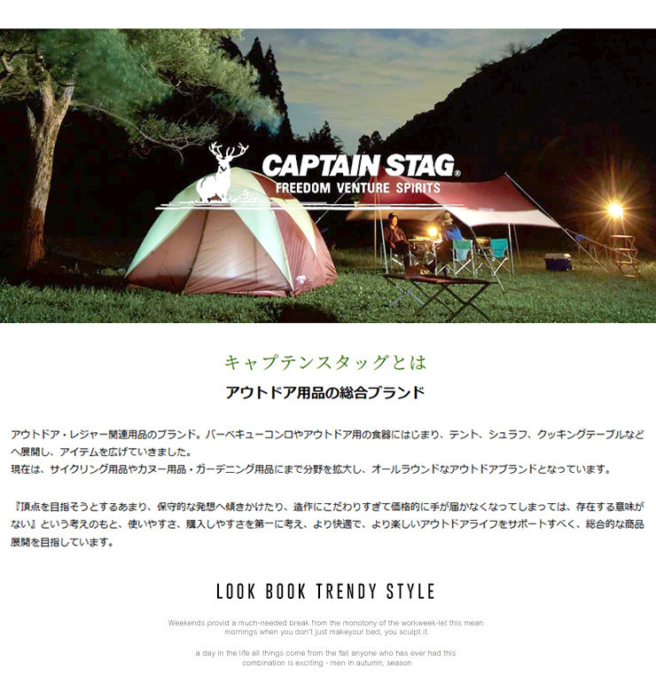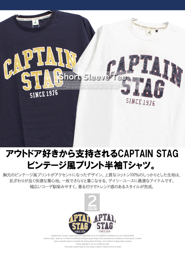 | 商品説明 | アウトドア・キャンプ好きから支持されるCAPTAIN STAGのビンテージ風プリント半袖Tシャツ。 |