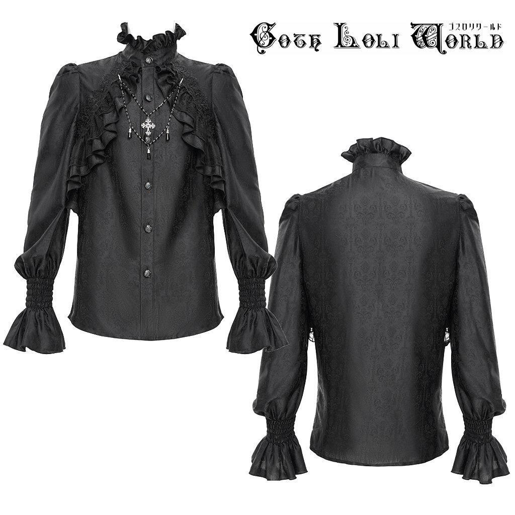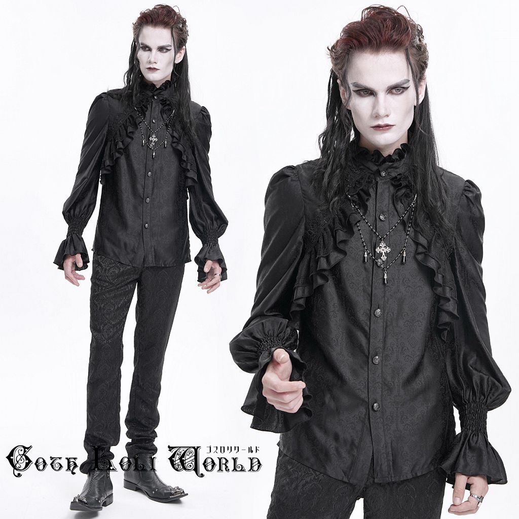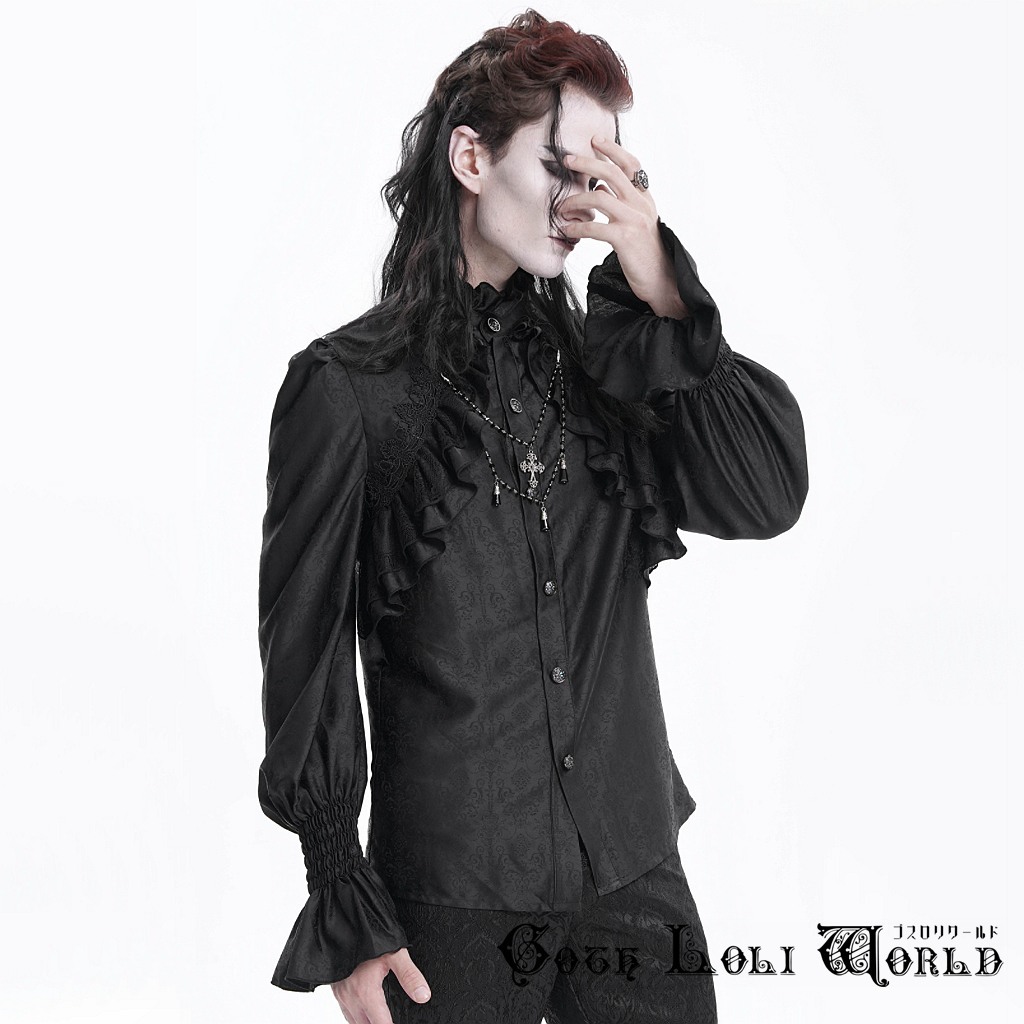 即納 SHT12401-M ゴシックファッション 十字架チェック付 長袖ブラウス 黒色 ブラック 貴族 ジェントルマン ビジュアル系