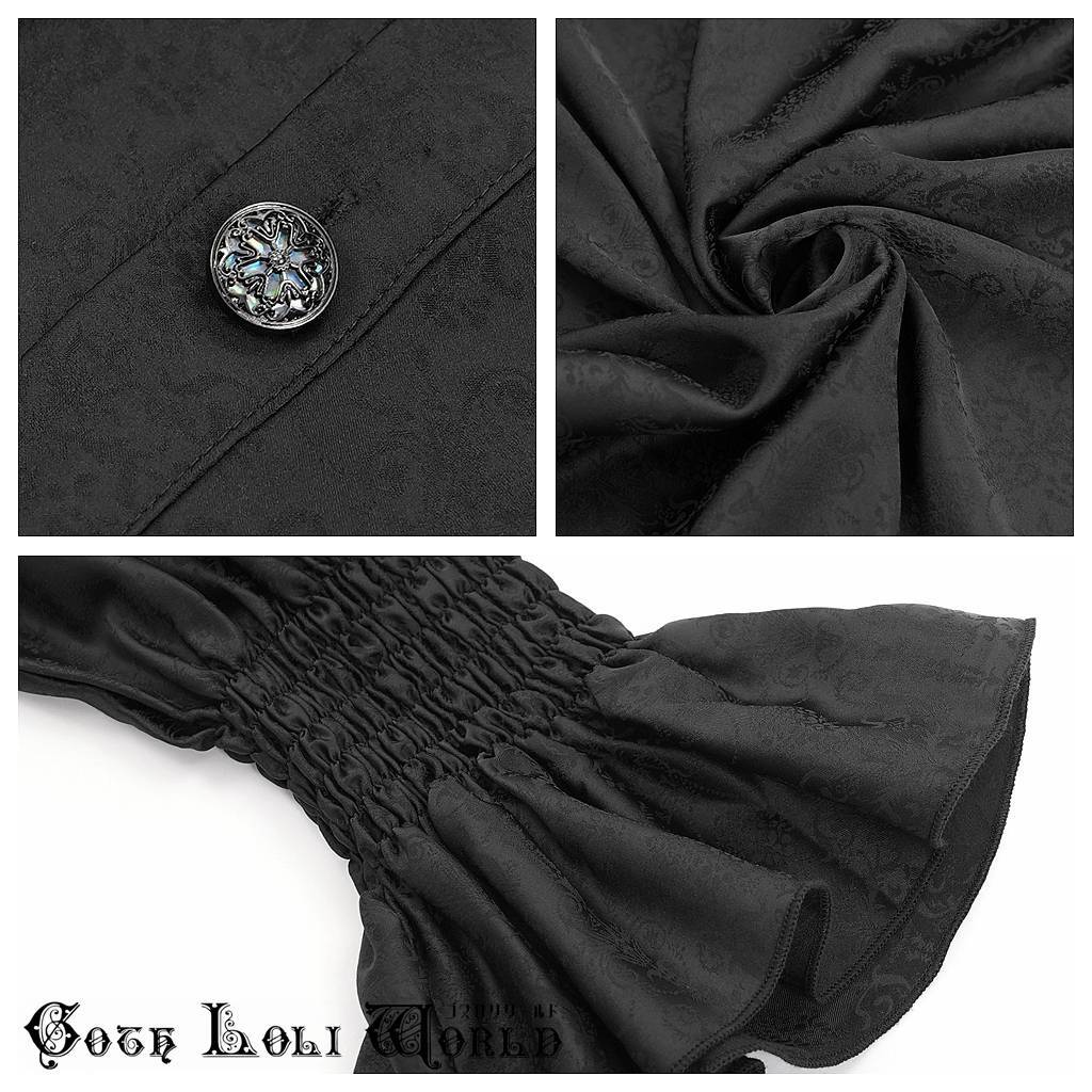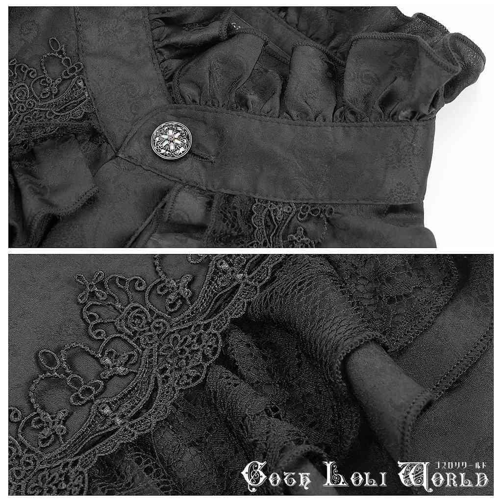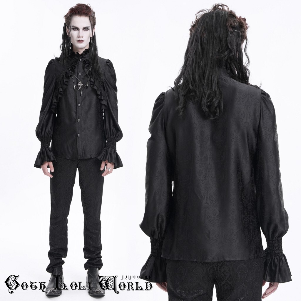 即納 SHT12401-M ゴシックファッション 十字架チェック付 長袖ブラウス 黒色 ブラック 貴族 ジェントルマン ビジュアル系