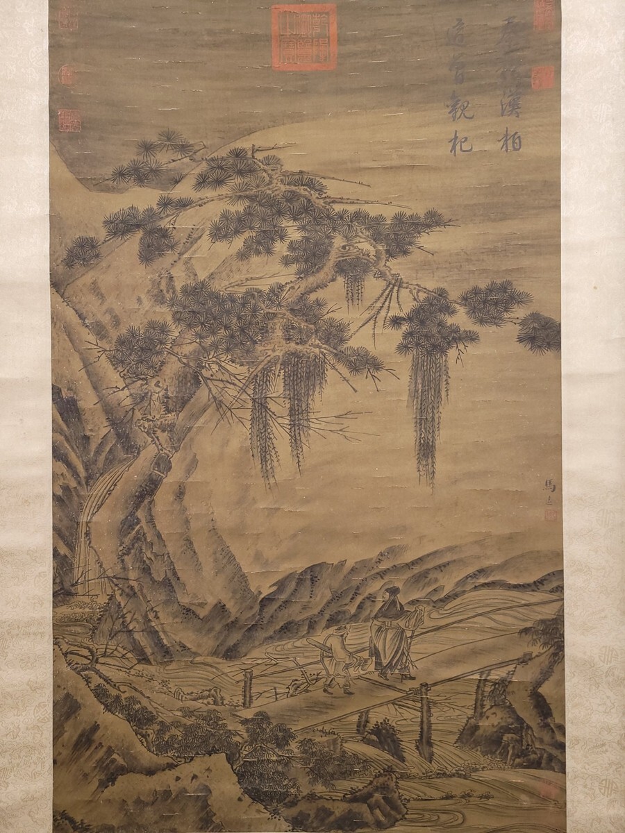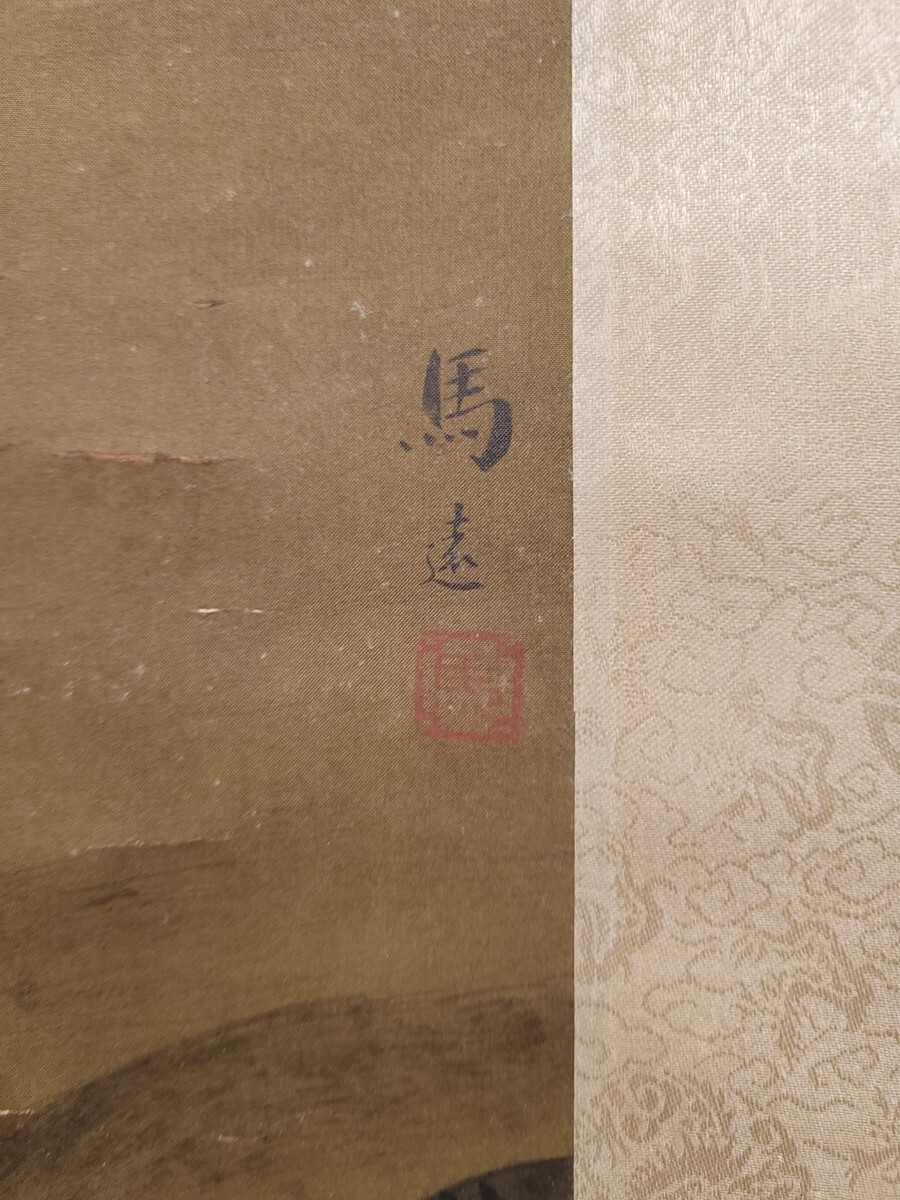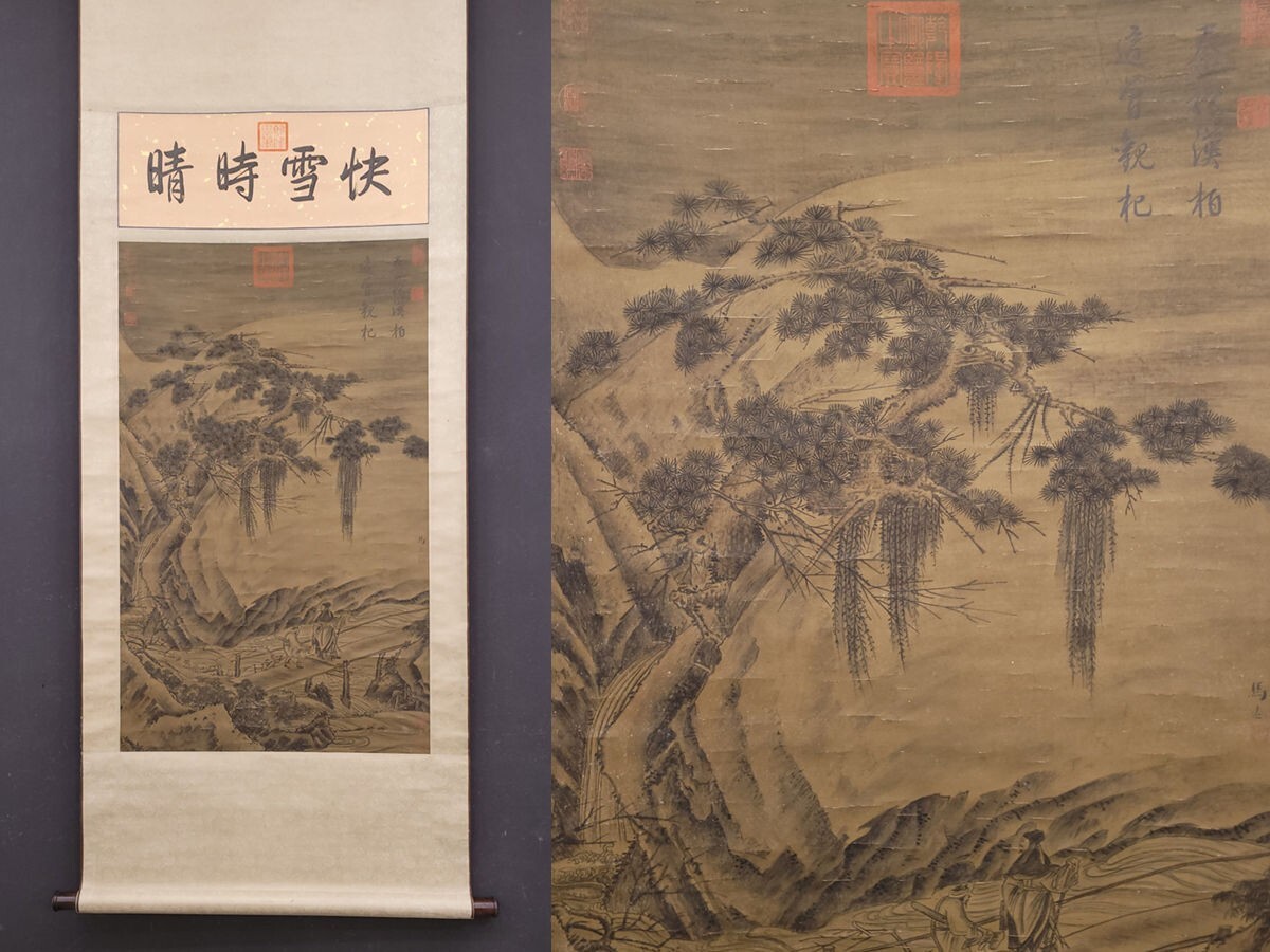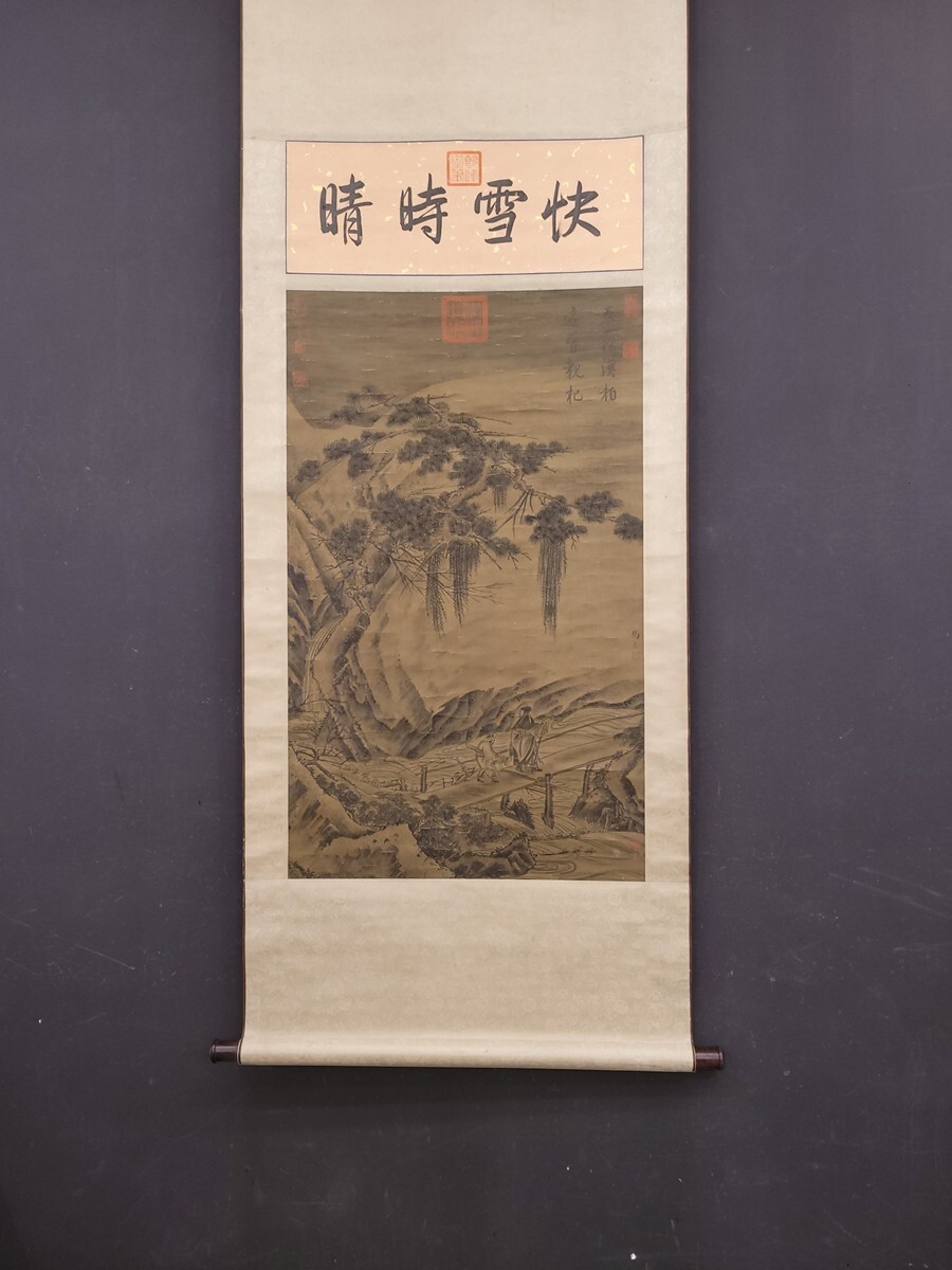 【瓏】「馬遠作 板橋踏雪図」南宋画家 肉筆絹本 掛け軸 書画立軸 巻き物 中国書画 古美術 蔵出