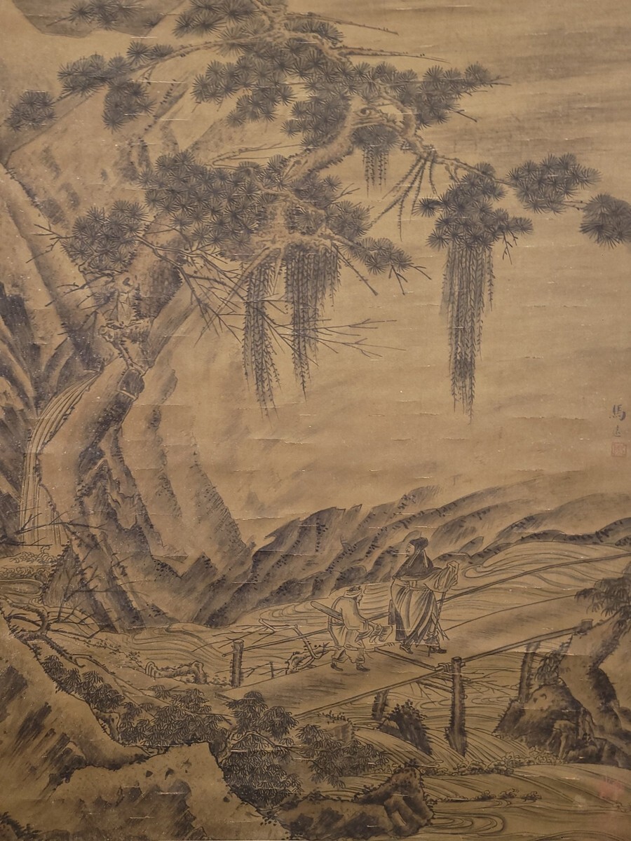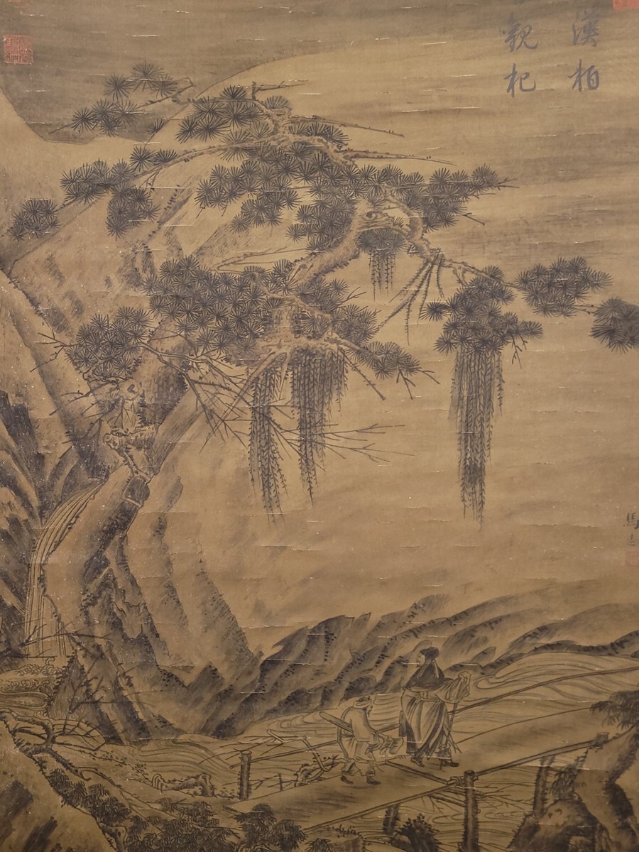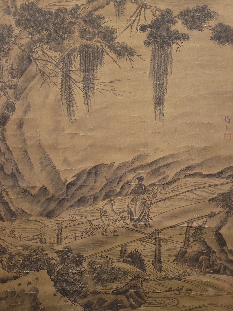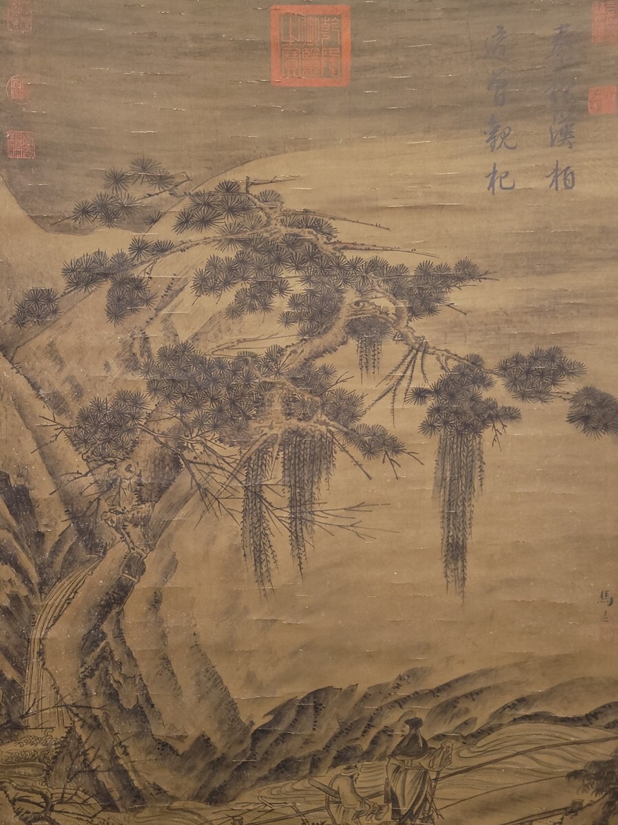 【瓏】「馬遠作 板橋踏雪図」南宋画家 肉筆絹本 掛け軸 書画立軸 巻き物 中国書画 古美術 蔵出