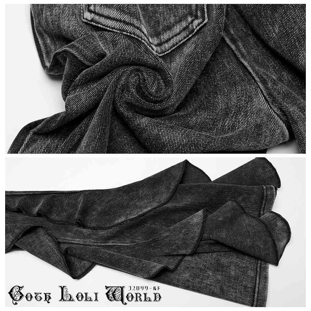 即納 OK-699NCF-BK-S ゴシックファッション ダンス用 フリルデニム ロングパンツ ゴスロリ ロリィタ ビジュアル系 ヴィジュアル系 V系