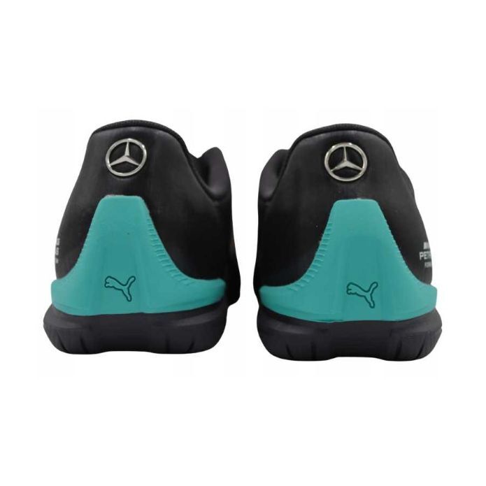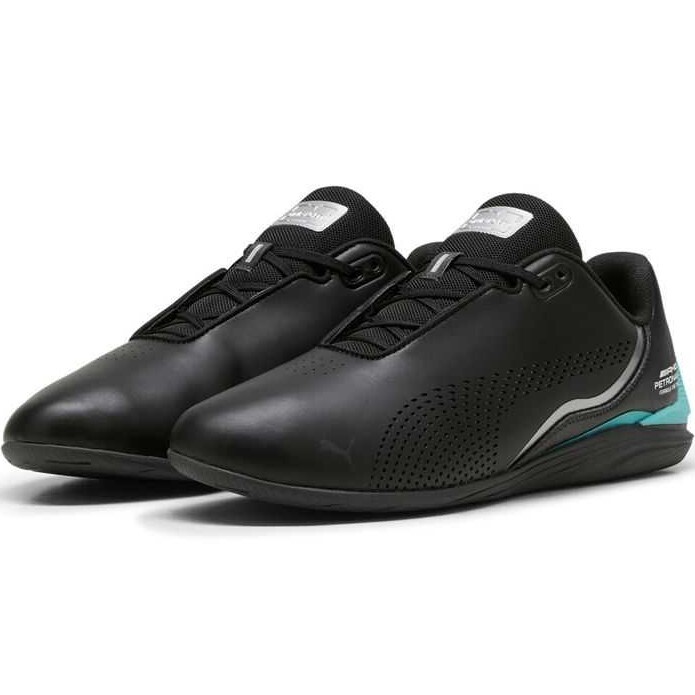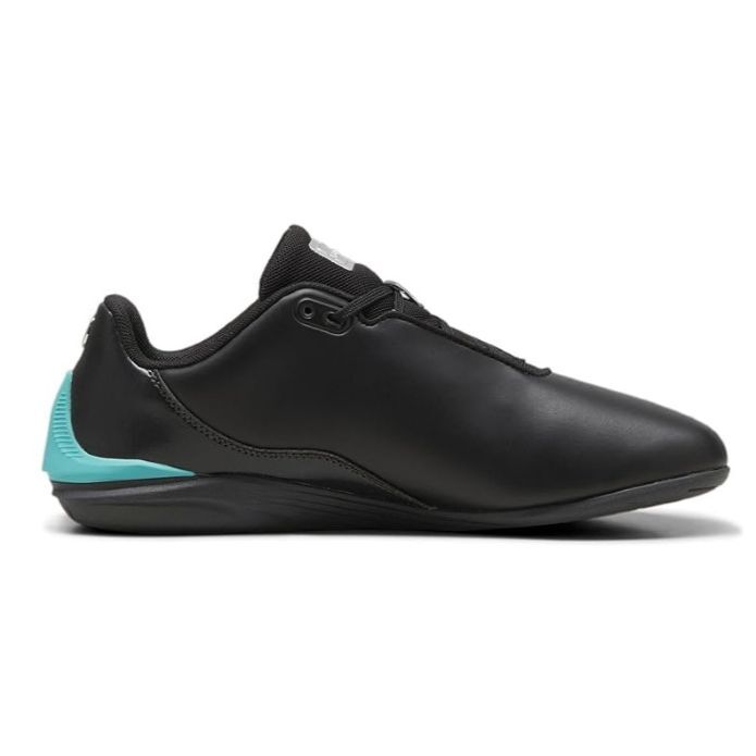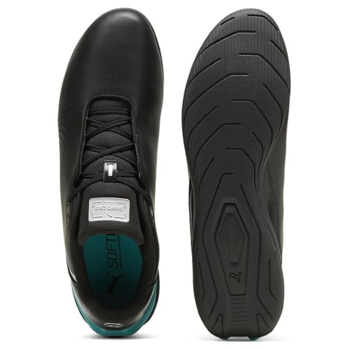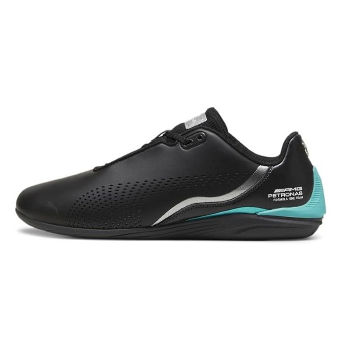 すっきりと洗練されたシルエット、メルセデスAMGペトロナスのブランディングロゴが目を引く一足。