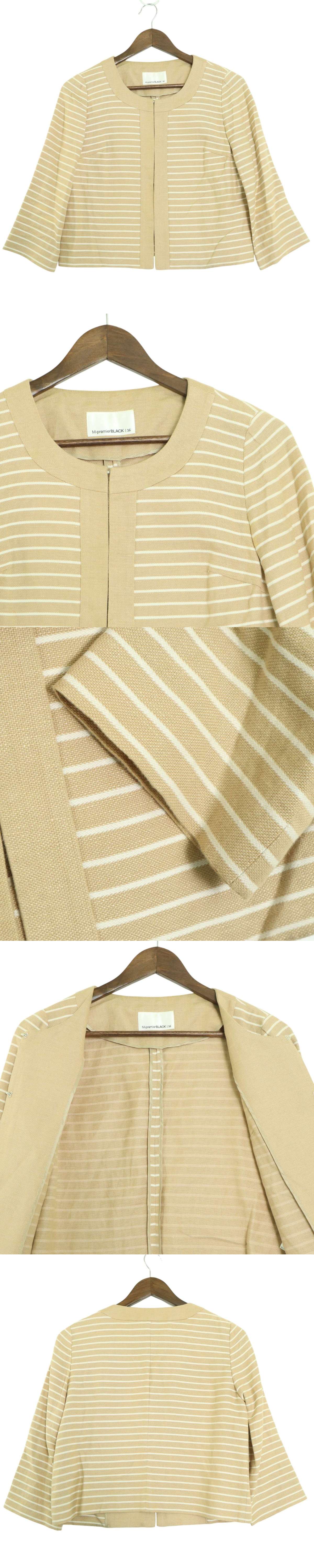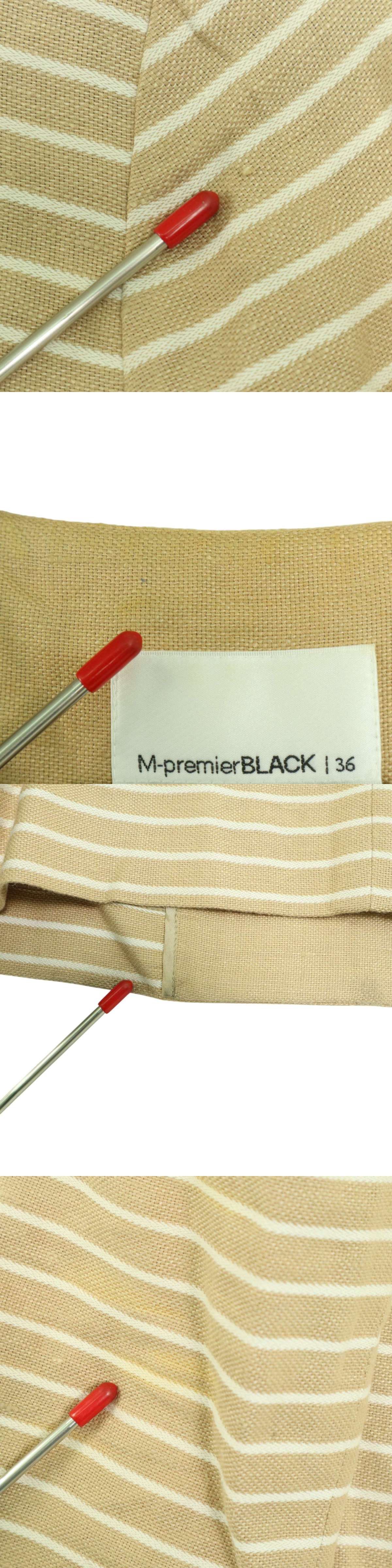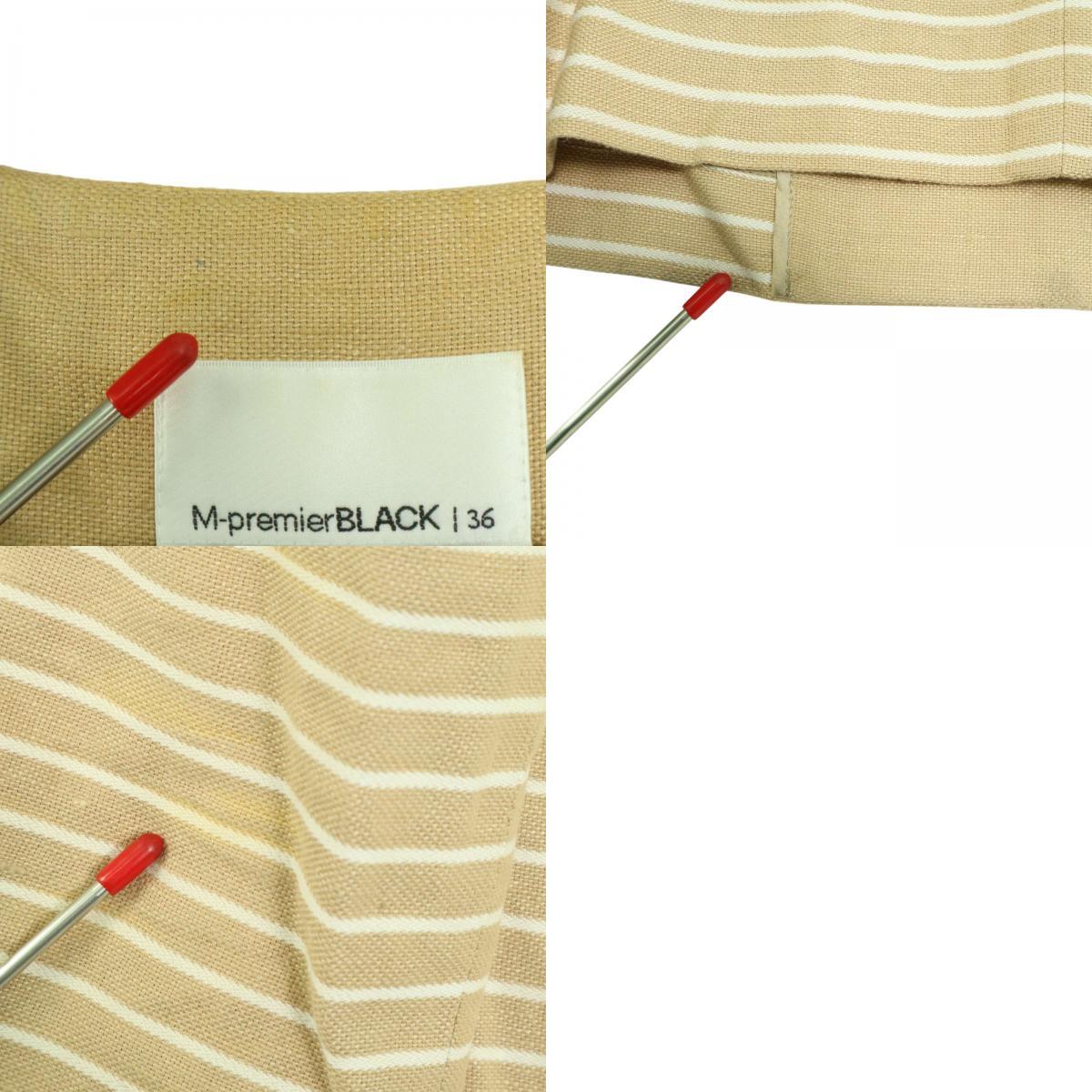M-premier BLACK エムプルミエ ブラック 春夏 麻 リネン★ ボーダー ノーカラー ジャケット Sz.36 レディース