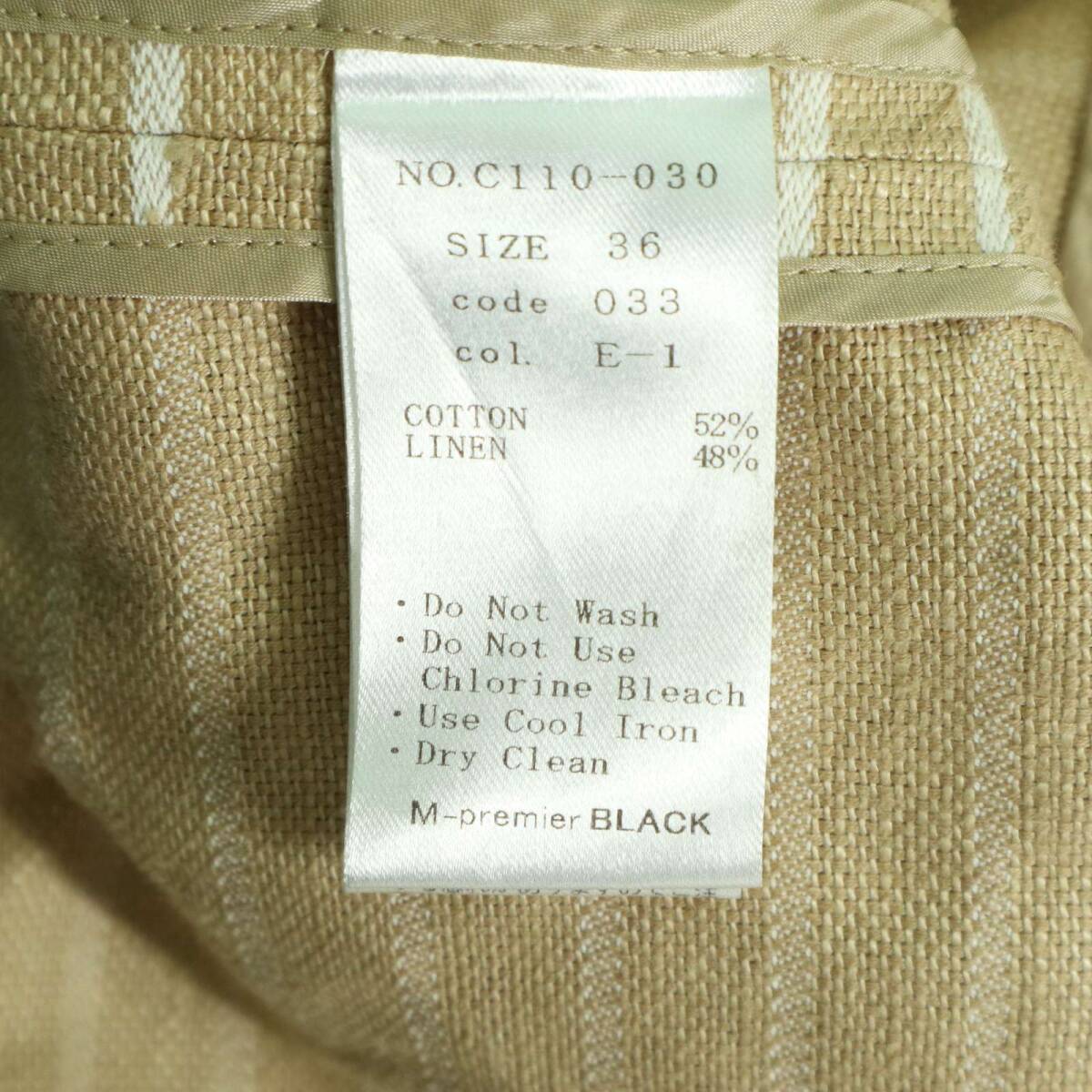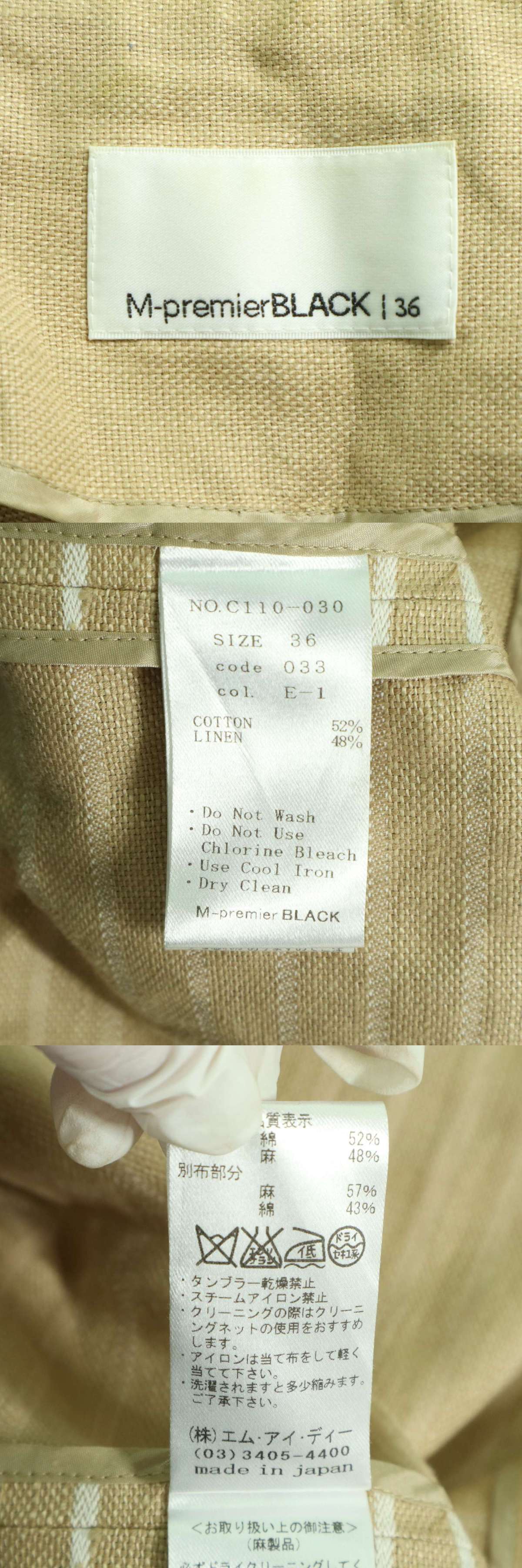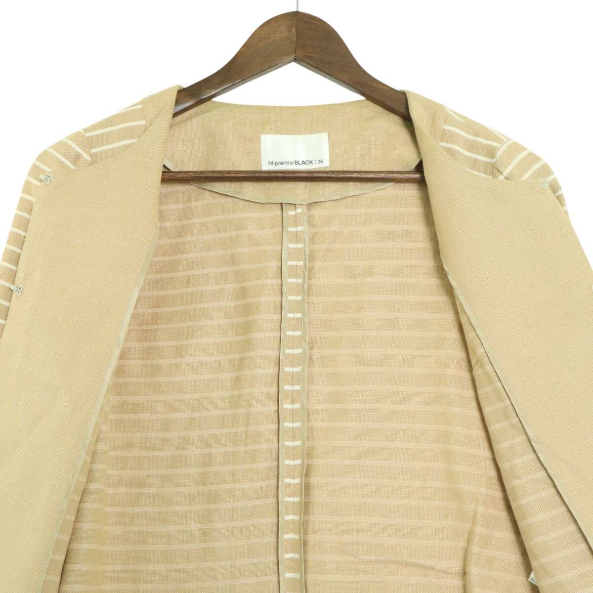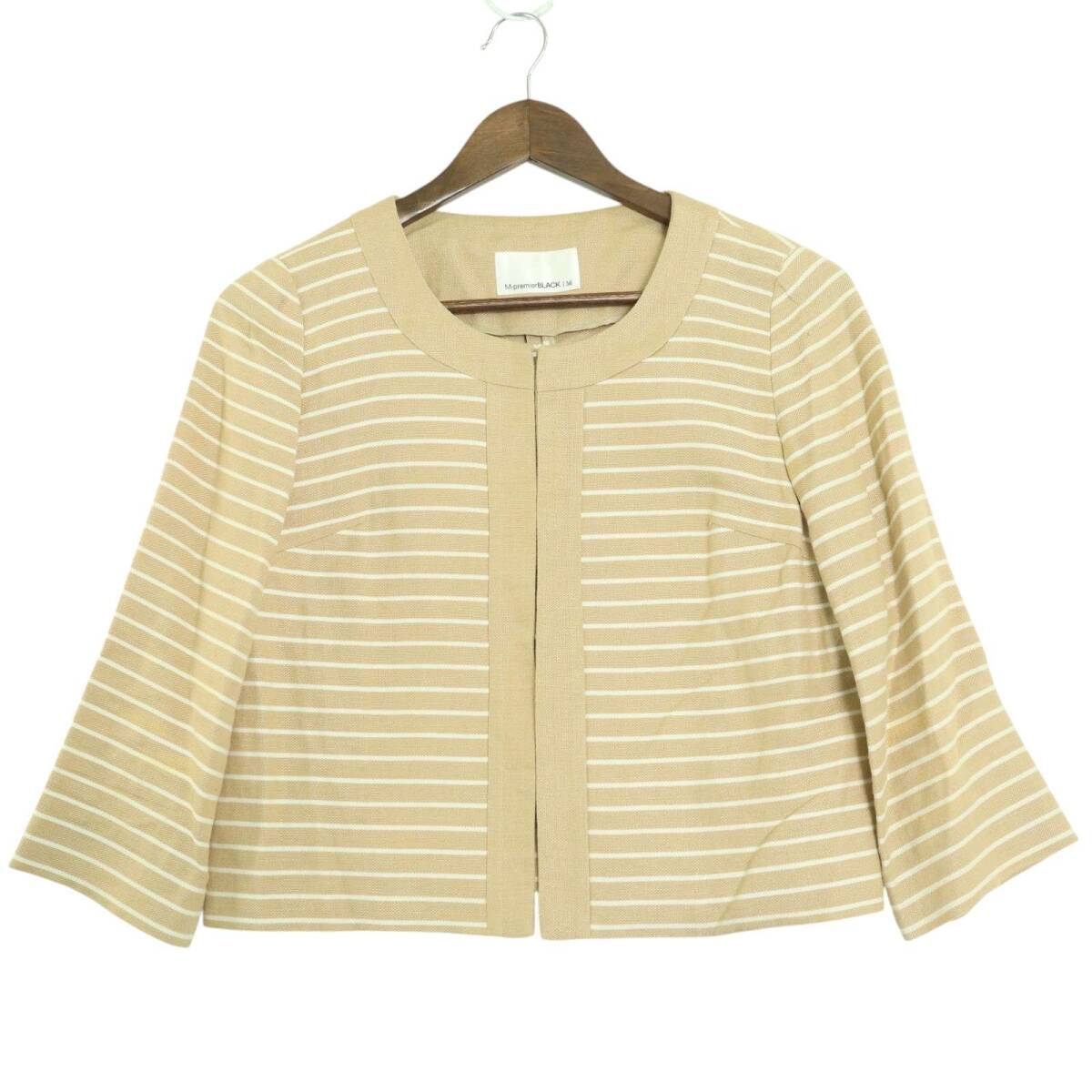 M-premier BLACK エムプルミエ ブラック 春夏 麻 リネン★ ボーダー ノーカラー ジャケット Sz.36 レディース