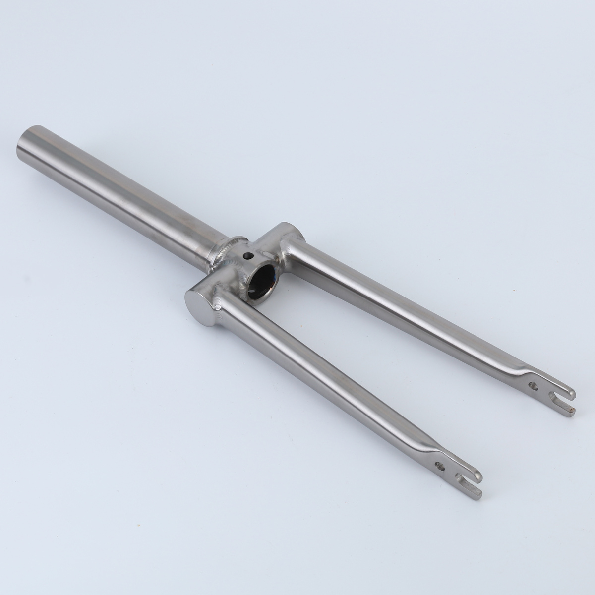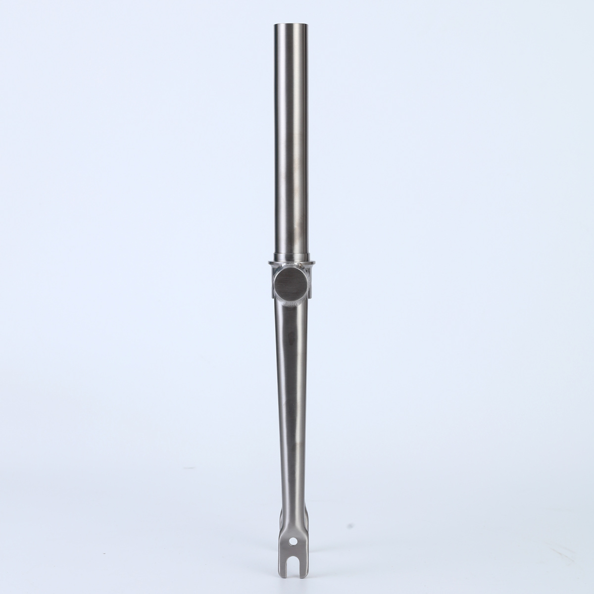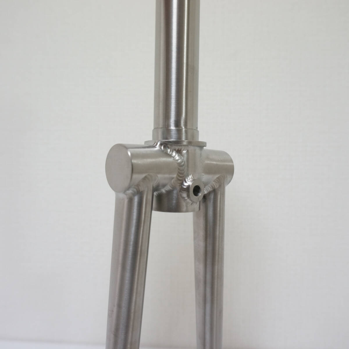 ・素材は64チタンを使用するため、フォーク本体の重量は約280グラムで、トレンクル7500の純正フォーク(590グラム)より310グラム軽くすることができたものの、硬度剛性が上がりました。