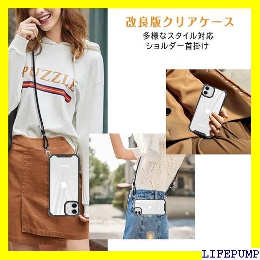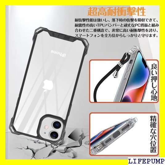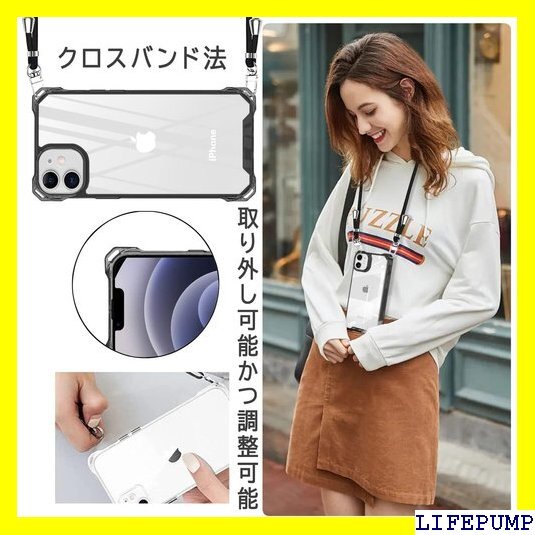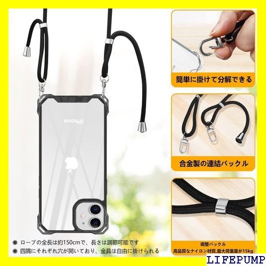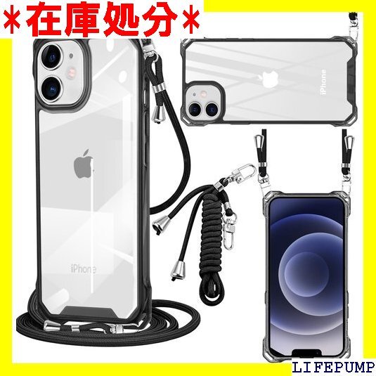iPhone 12 ケース クリア PC iPhone 携帯ケース 首掛け 肩掛け 落下防止 衝撃吸収 ブラック 701