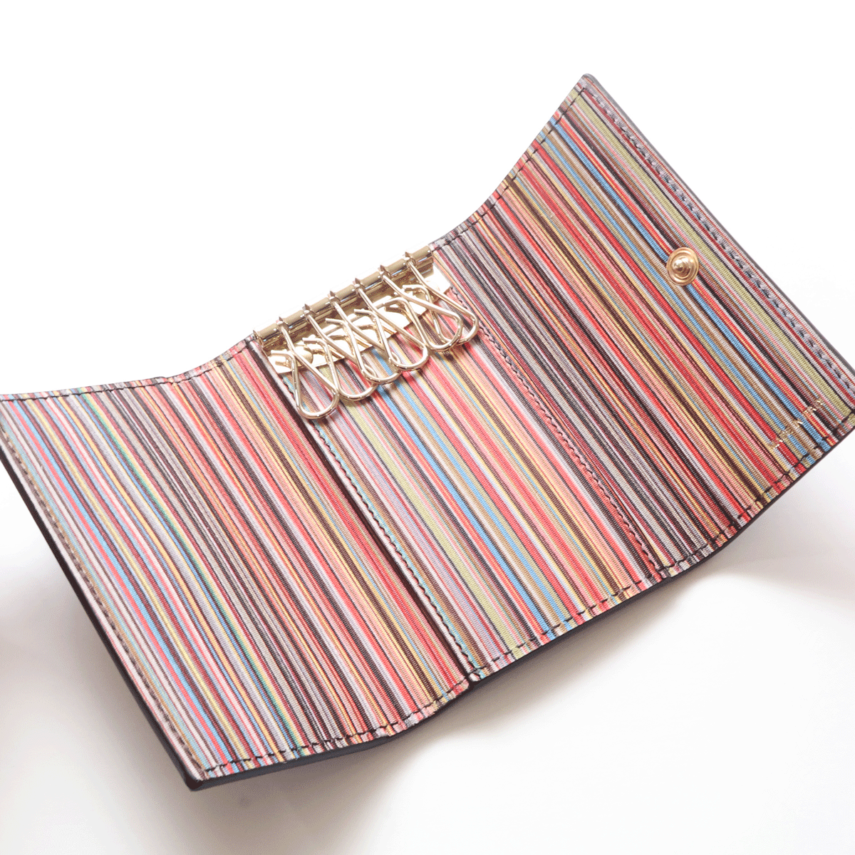 PaulSmith ポールスミス キーケース イタリア製 使い勝手がいい6連の本革キーケースです。 外側はブラックソリッド、内側はポールスミスのアイコンであるマルチカラーです。 品名:ポールスミス キーケース インテリアマルチ 型番:VPS873-10 カラー:ブラック&マルチカラー サイズ:縦10.5×横6.8×マチ2㎝ 素材:本革 収納:6連キーリング、 付属品:ボックス、紙タグ 定価:22,000円 |