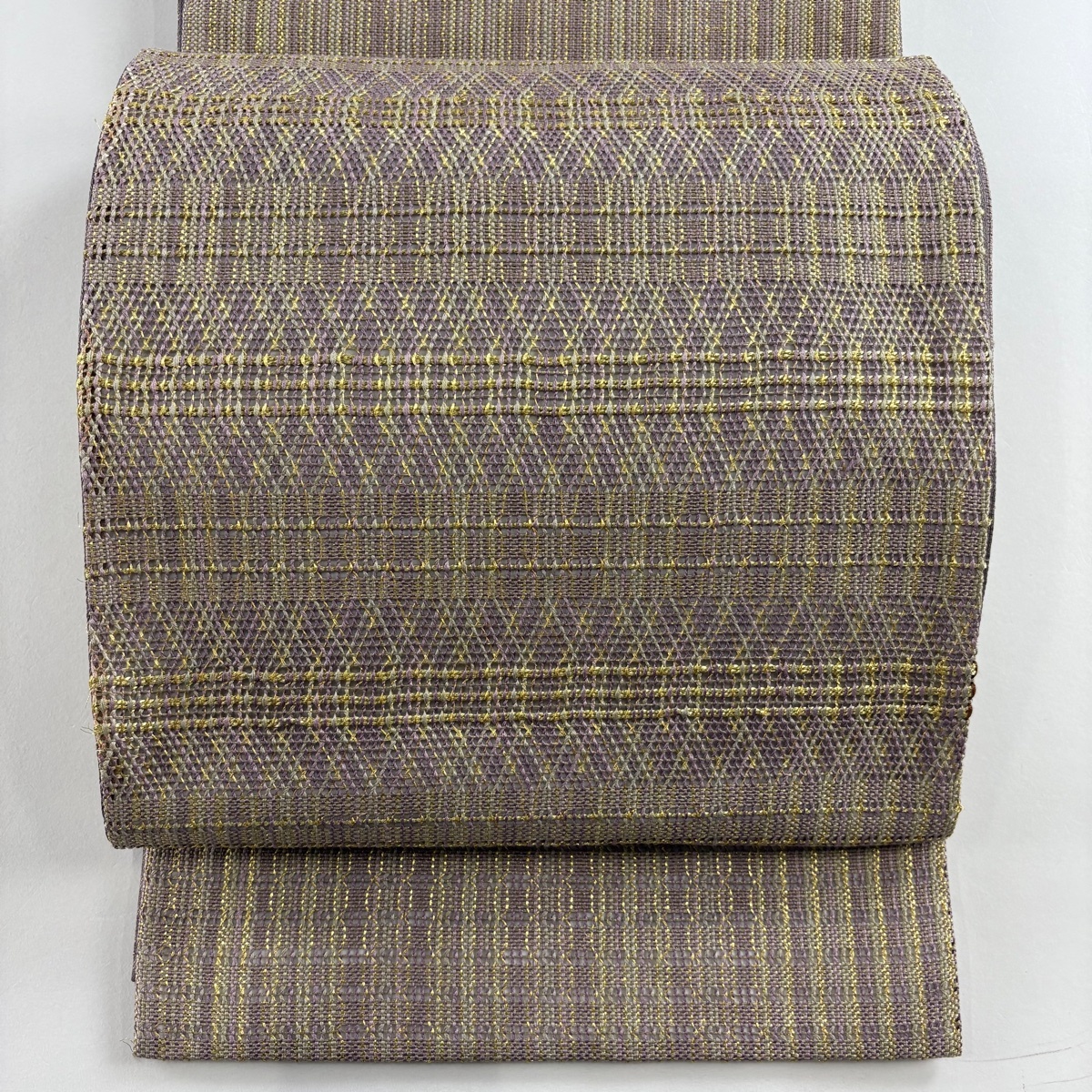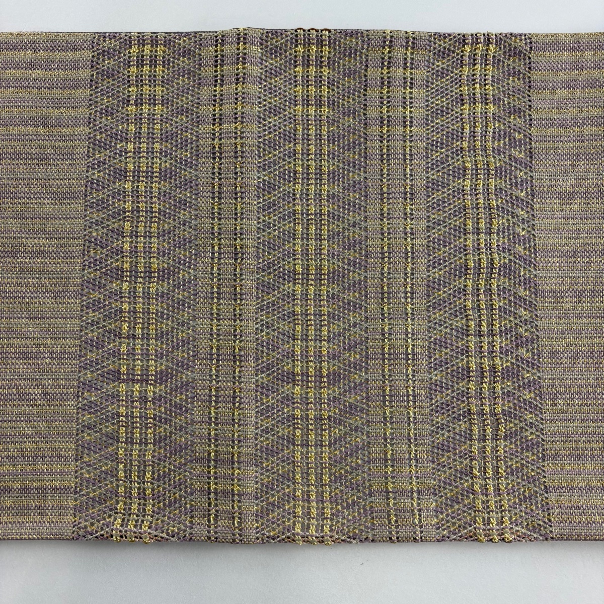 | 袋帯 美品 名品 縞 幾何学模様 金糸 灰紫 お太鼓柄 正絹 【中古】 |