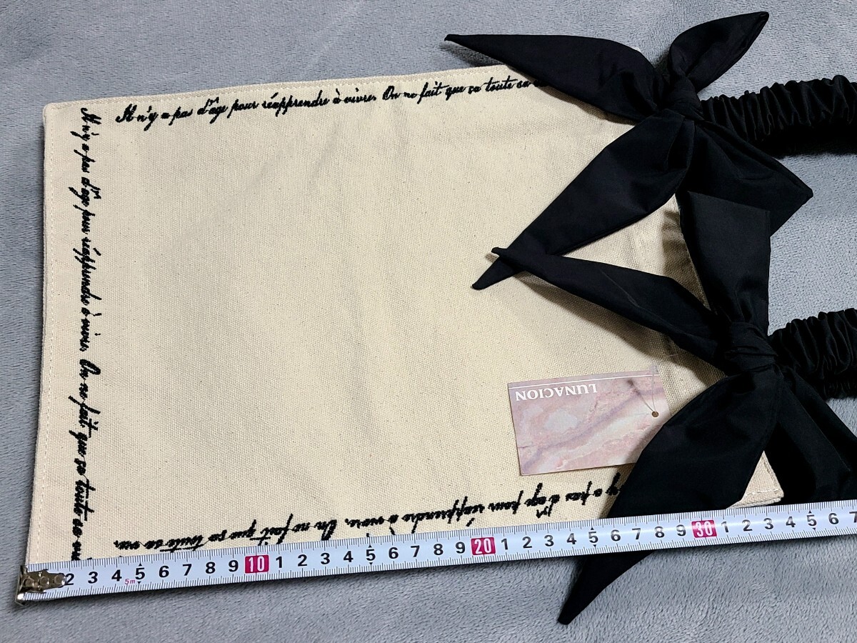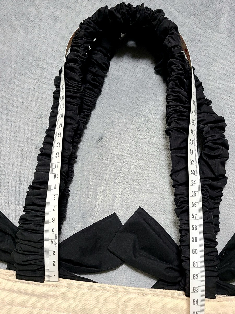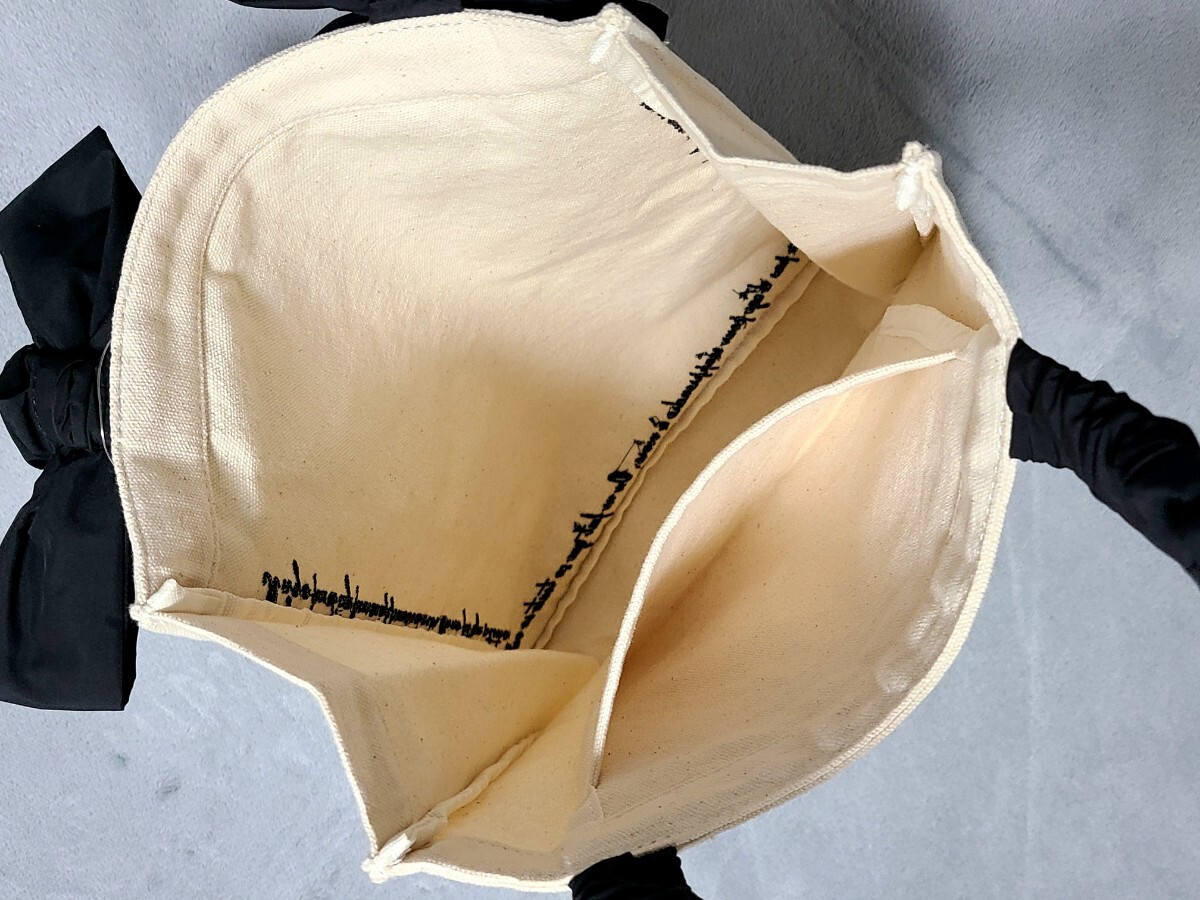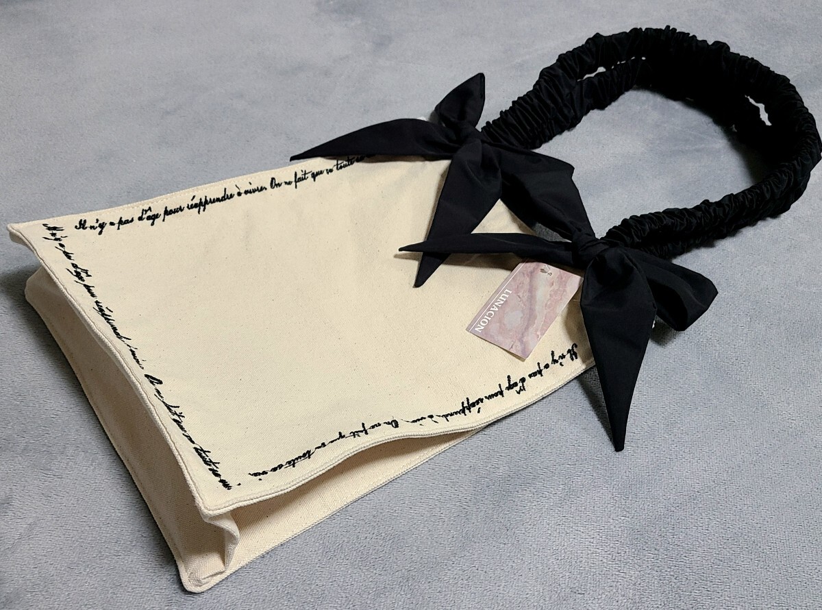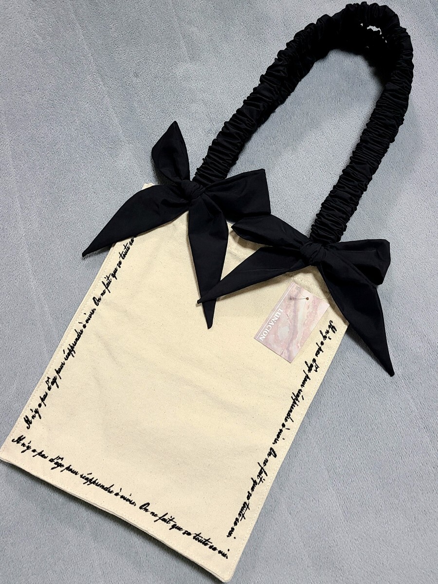 キャンバス  リボン シャーリングハンドル  ロゴ刺繍 トートバッグ新品・未使用です。