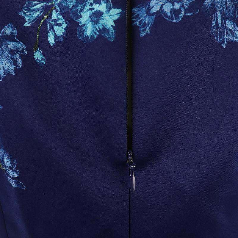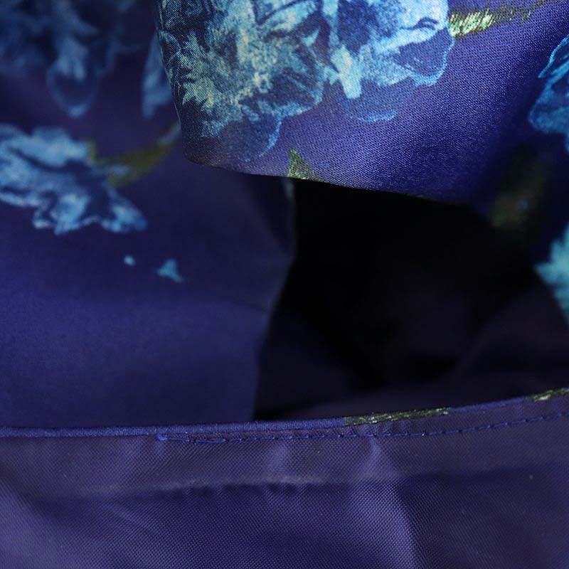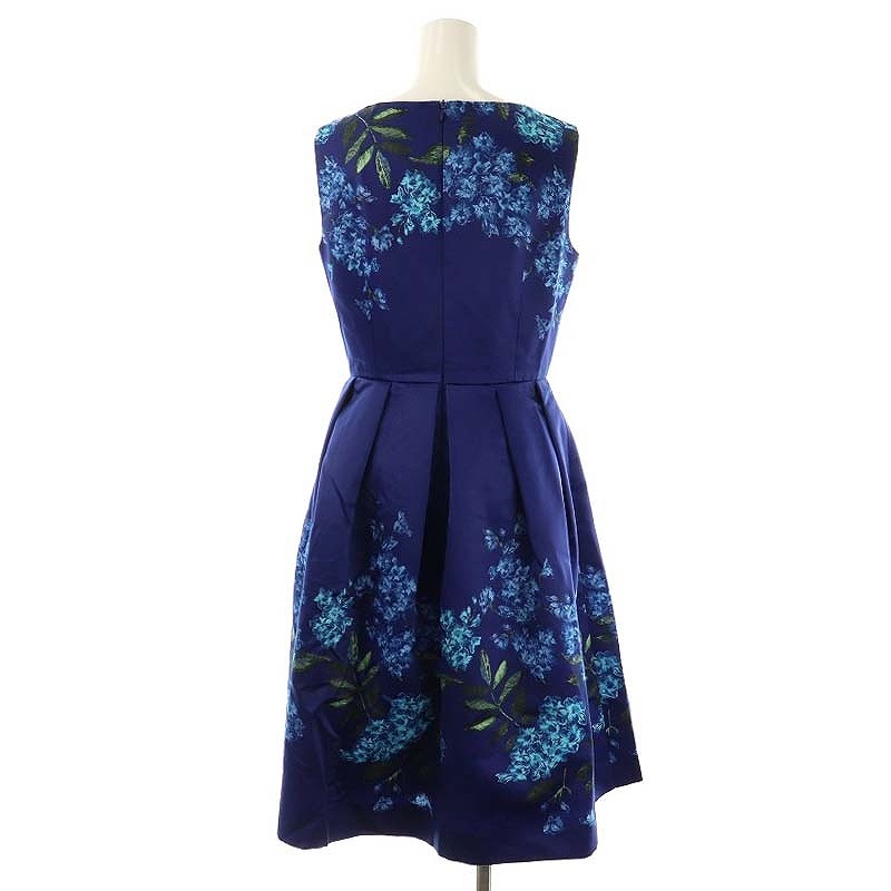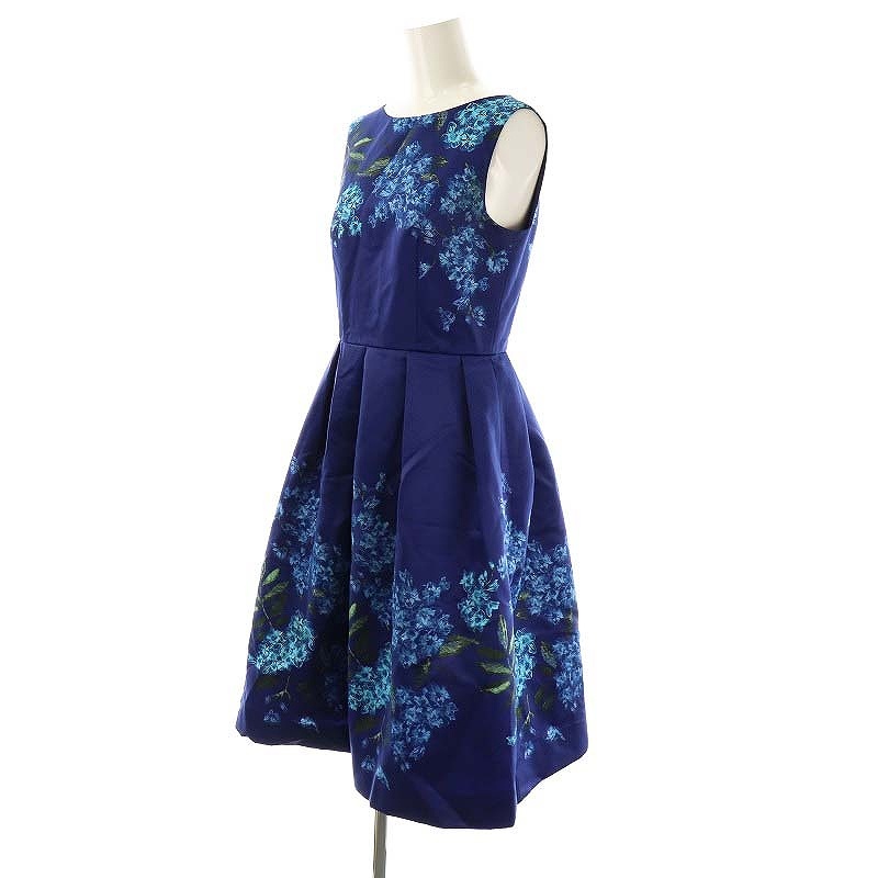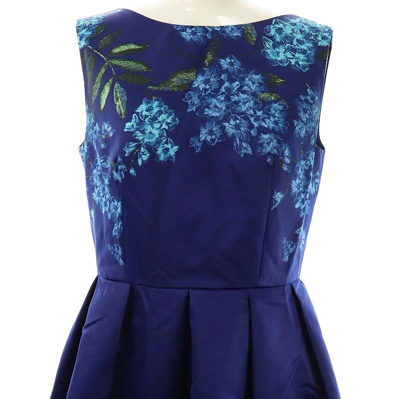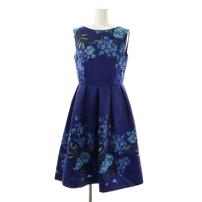 ストロベリーフィールズ STRAWBERRY-FIELDS grace フラワー サテン ノースリーブドレス ワンピース ミモレ ロング 花柄 青