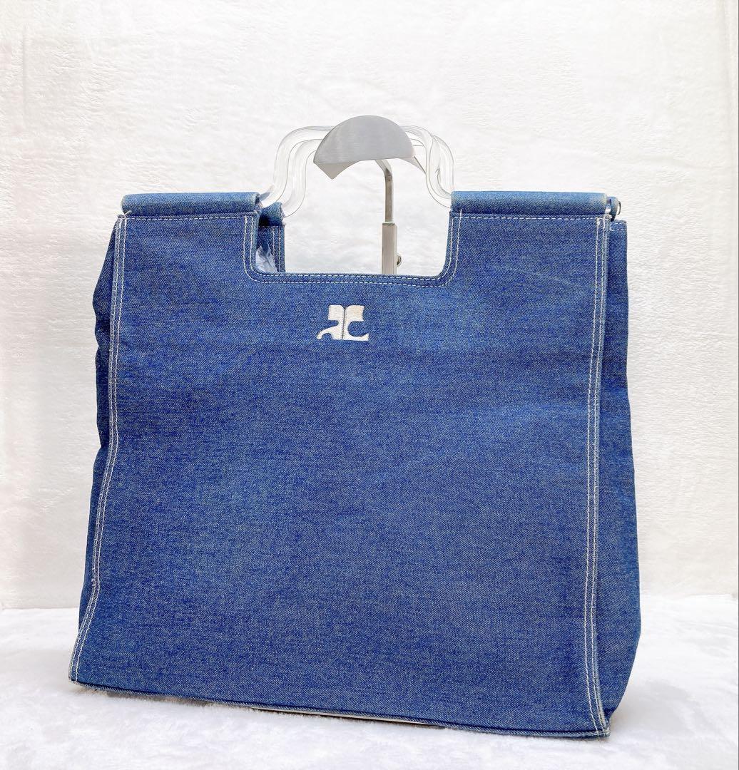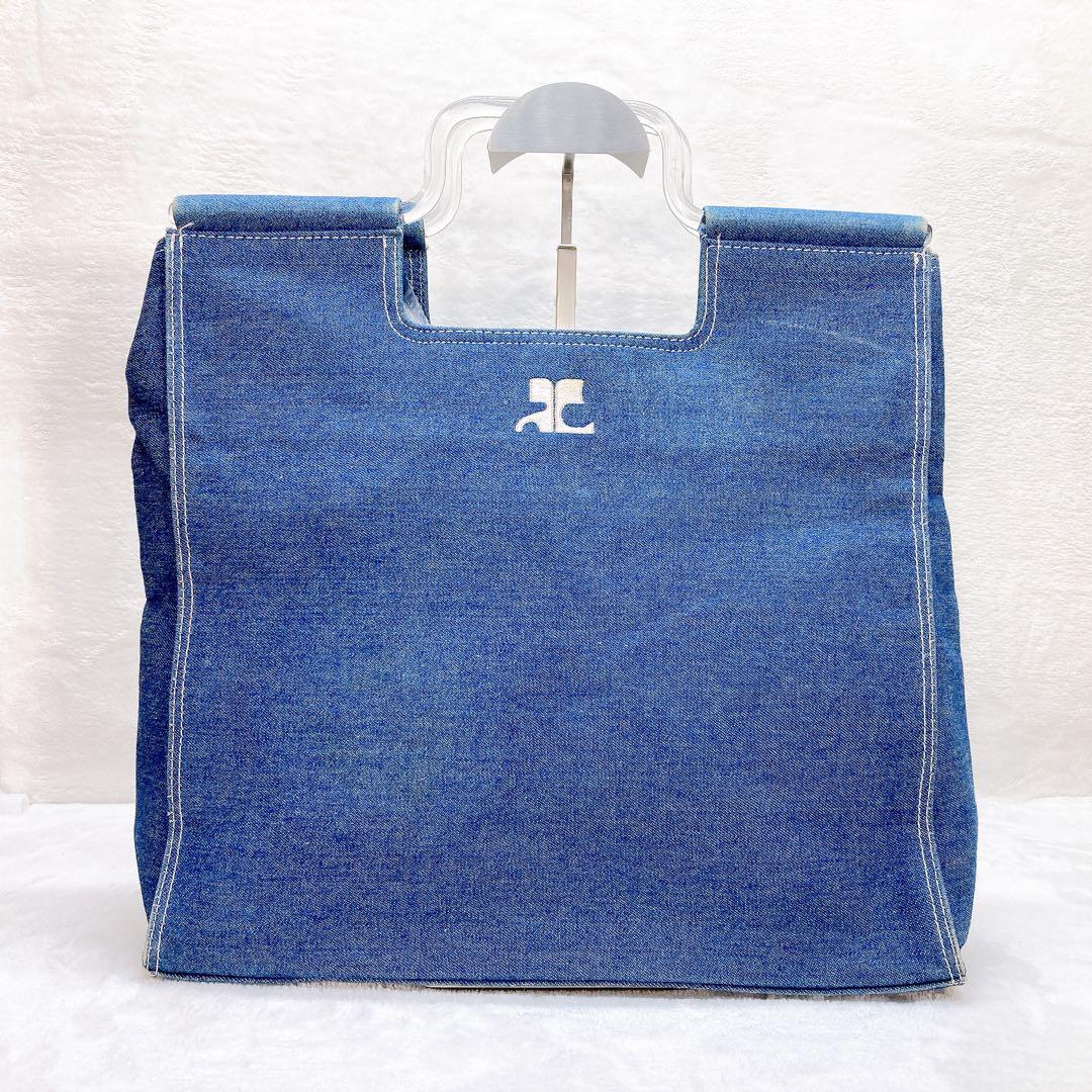 商品名綺麗courreges ハンドバッグ クリアハンドル デニム キャンバス