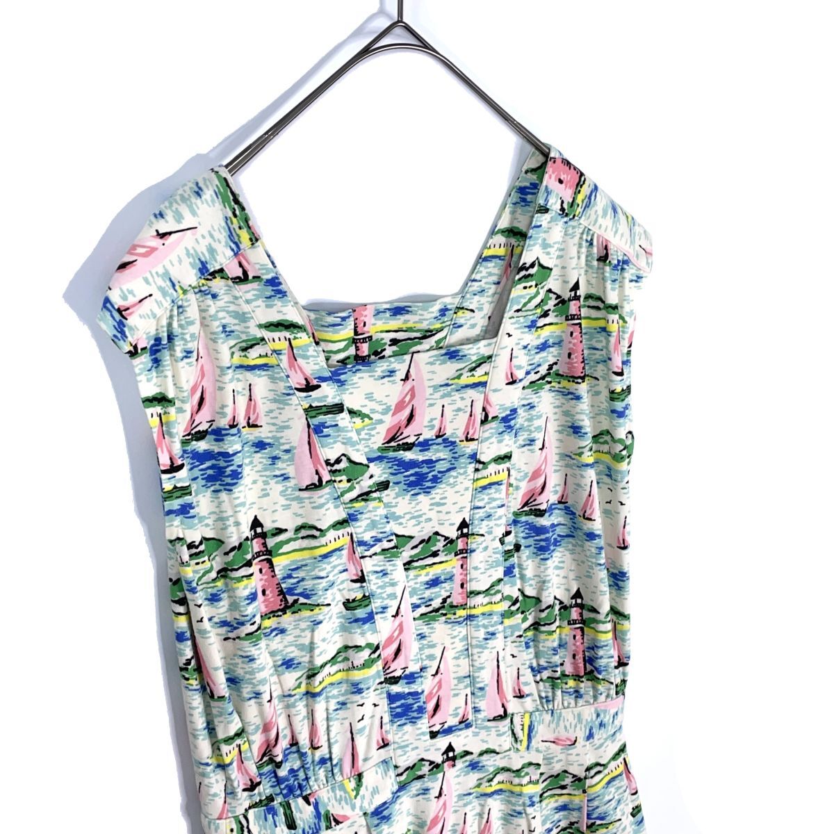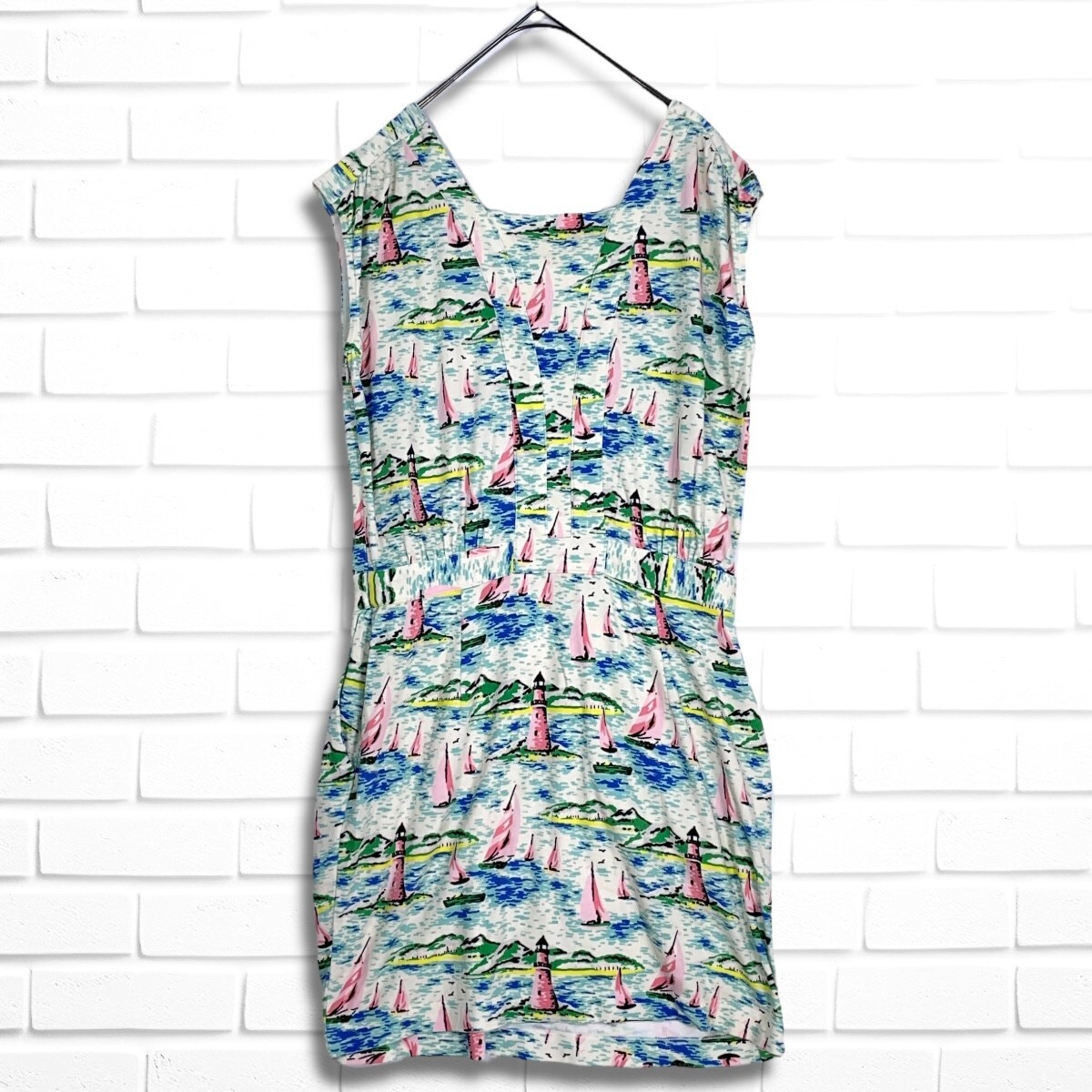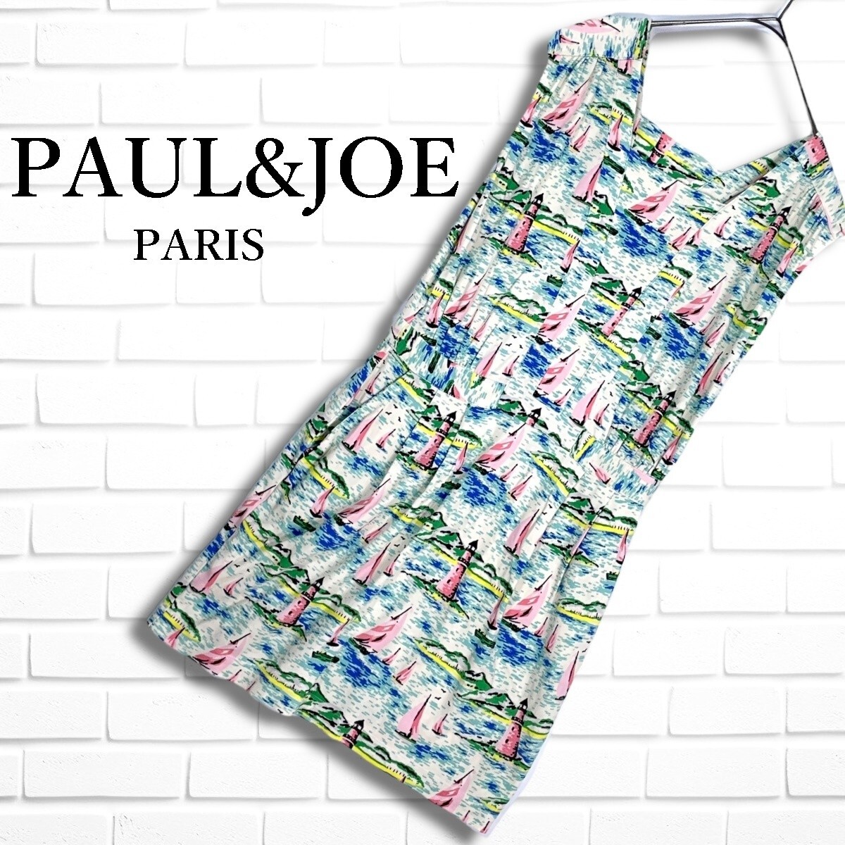 ◆美品◆ PAUL&JOE PARIS ポールアンドジョー レーヨン × コットン 総柄 ゆったり ノースリーブ ワンピース 白 レディース 38 2135G◎