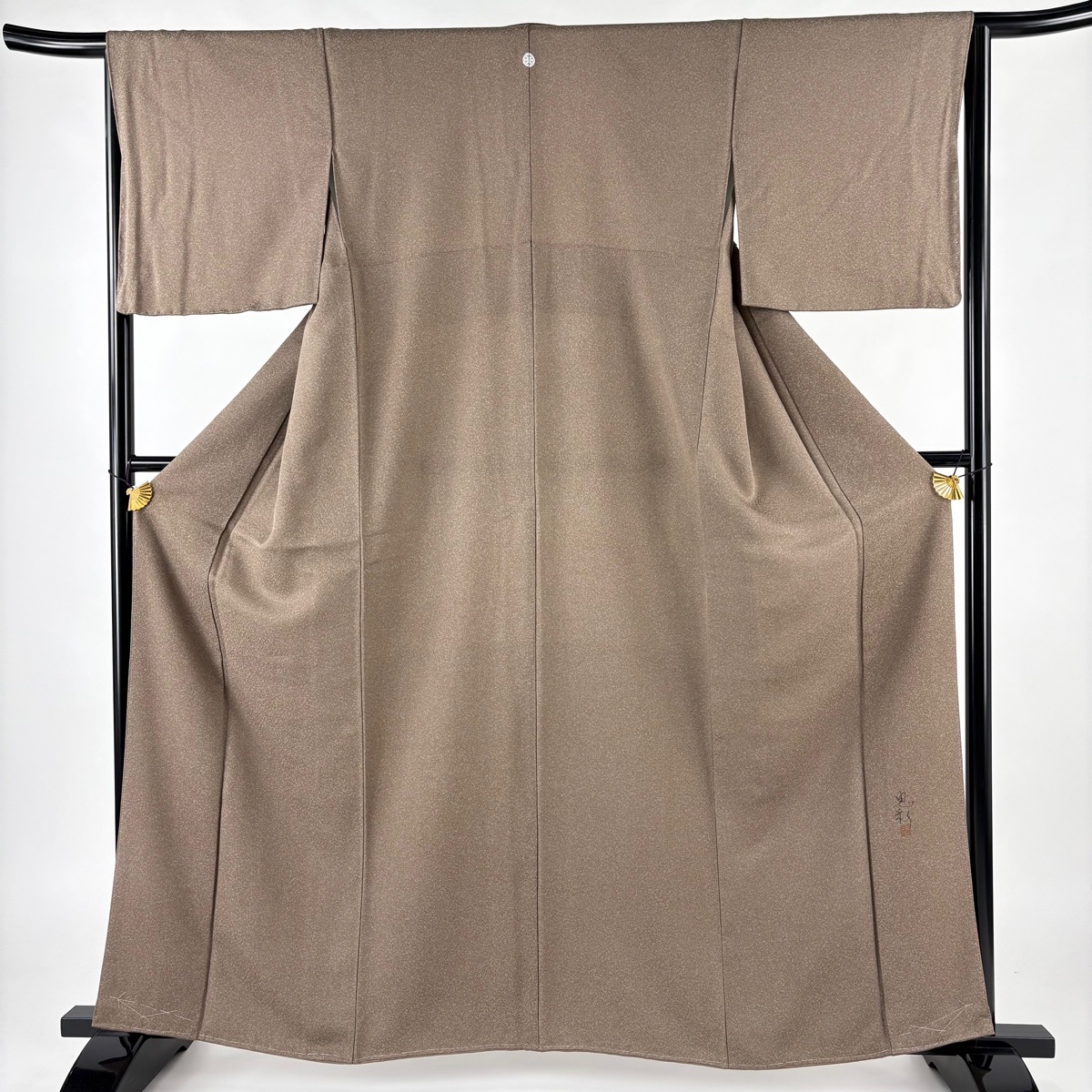 | 小紋 秀品 落款 田家鬼彩 幾何学模様 薄茶色 袷 身丈162 裄丈65.5 M 正絹 【中古】 |