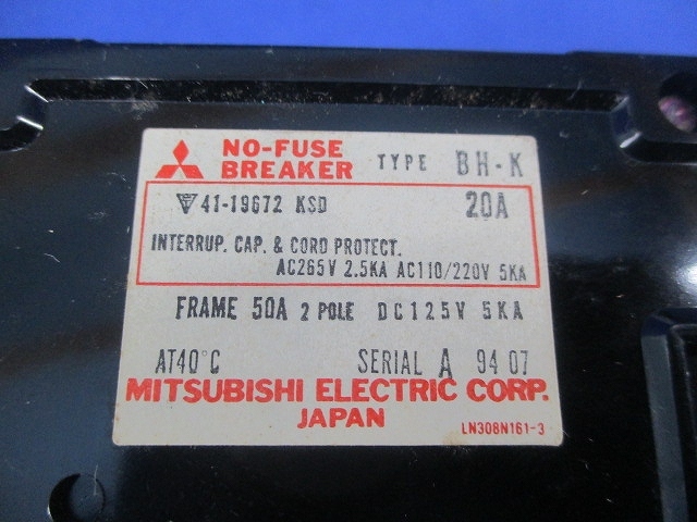 ノーヒューズブレーカ 2P20A 三菱電機 BH-K
