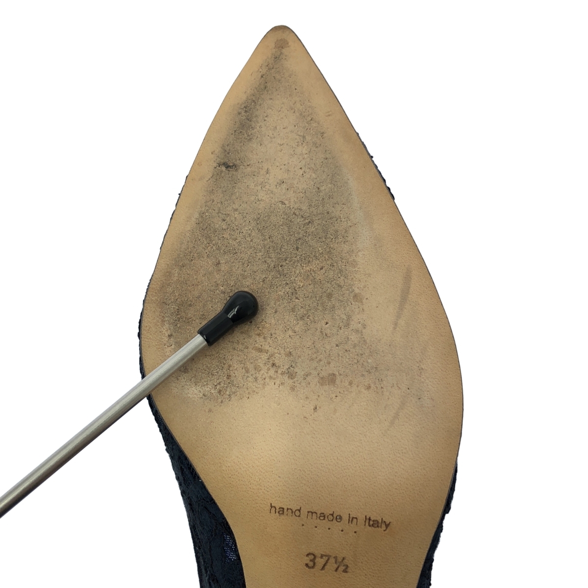 【美品】 MANOLO BLAHNIK / マノロブラニク | レース ポインテッドトゥ ヒール パンプス | 37 1/2 | ネイビー | レディース