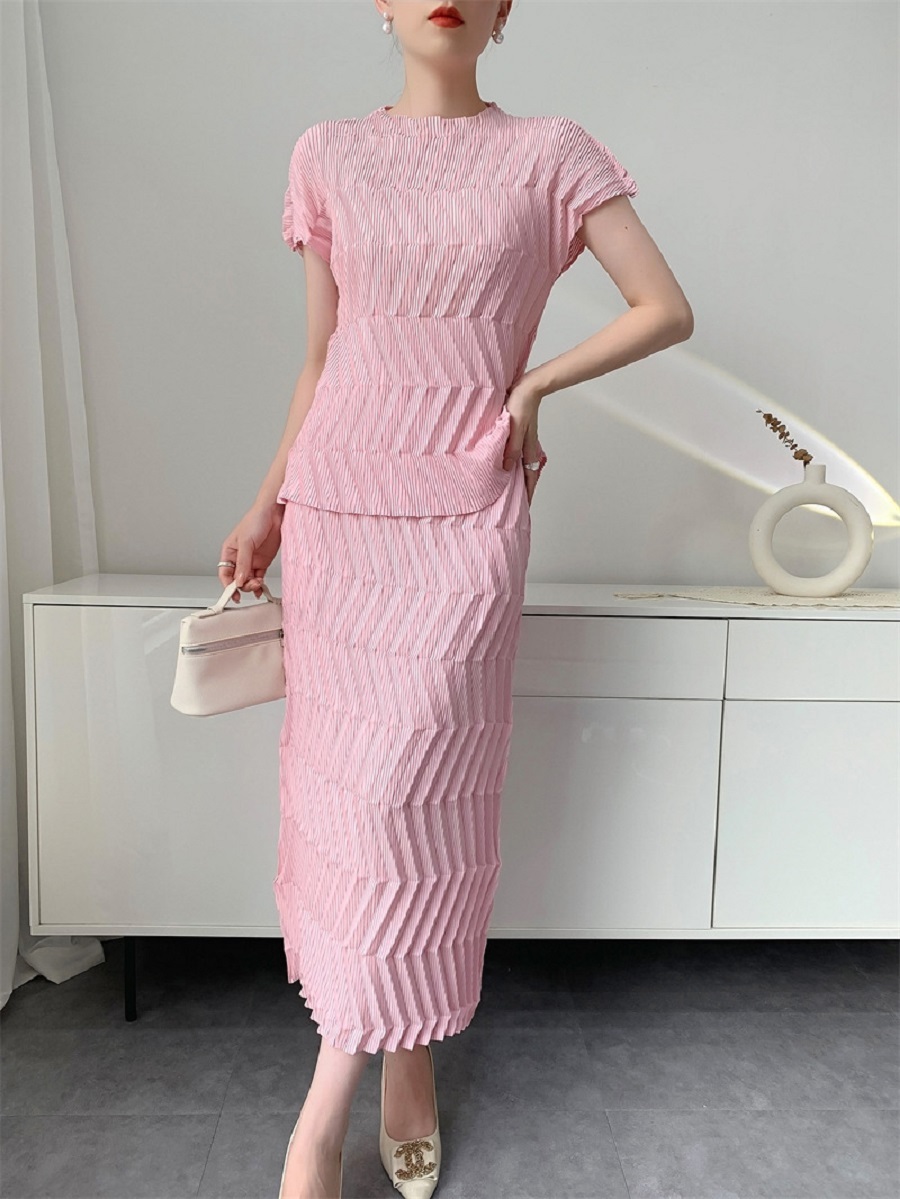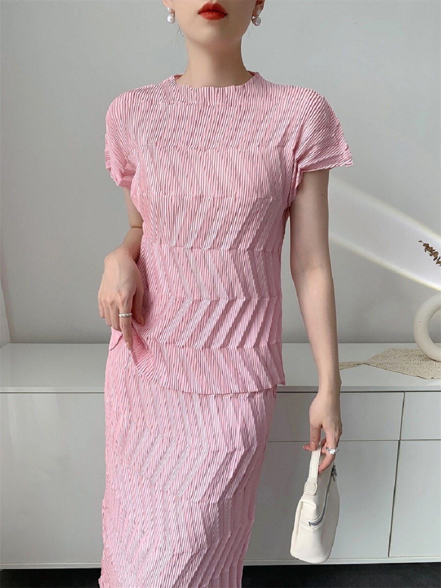 「同梱1万円送料無料」レディーストップスプリーツpleatsブラウスシャツ柔らかい肌触り弾力ドレープ性 がいい繊細なピンク