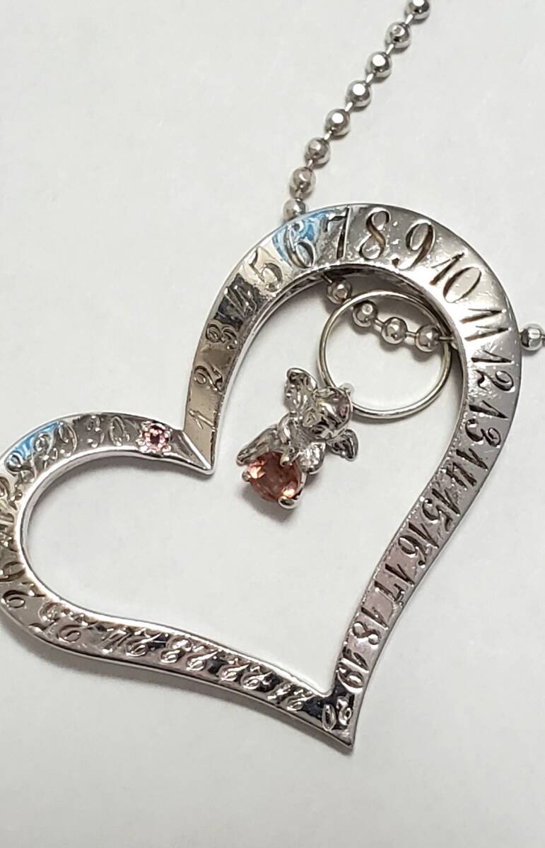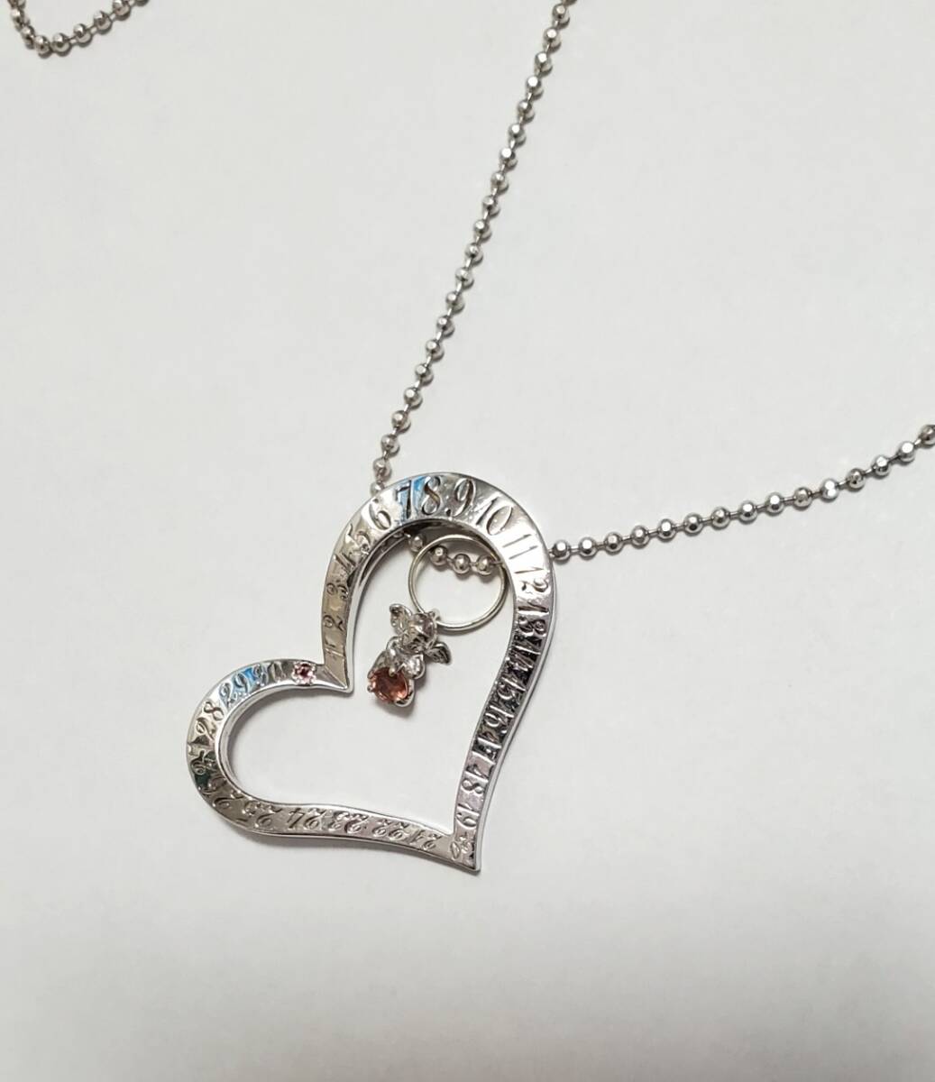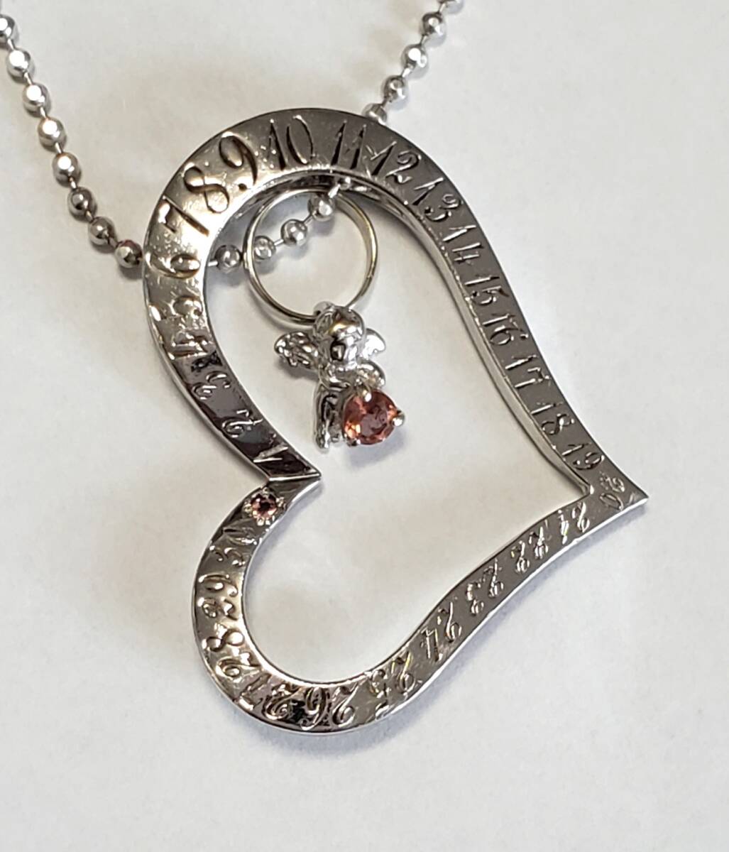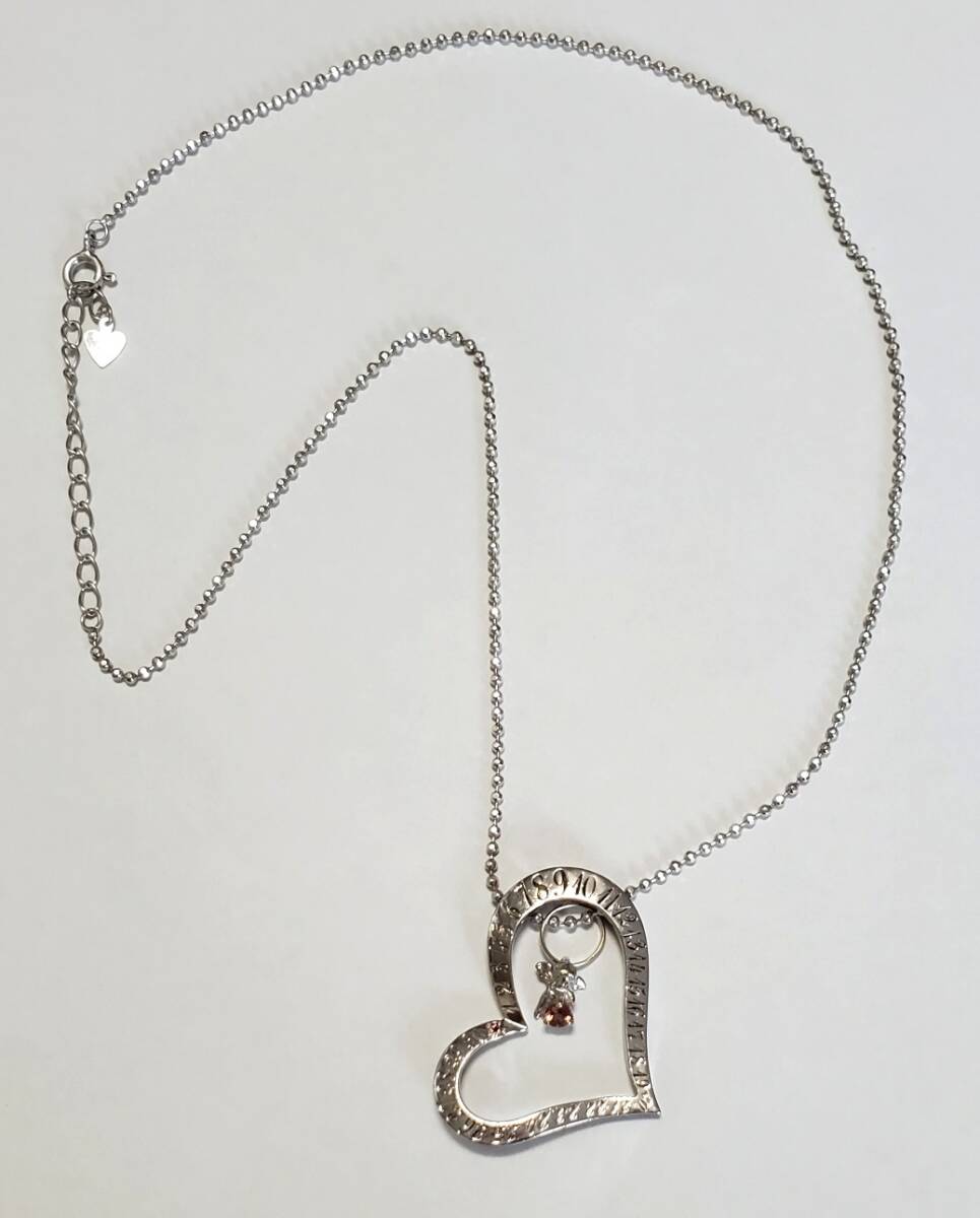 SILVER シルバー刻印 天然石 ハート 天使 ペンダントトップ ネックレス レディース アクセサリー 39㎝-43㎝ 9g 美品