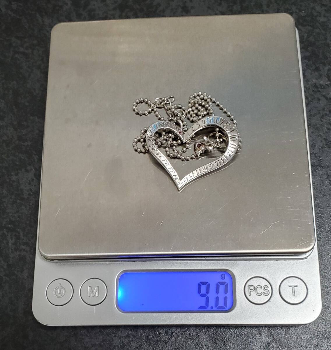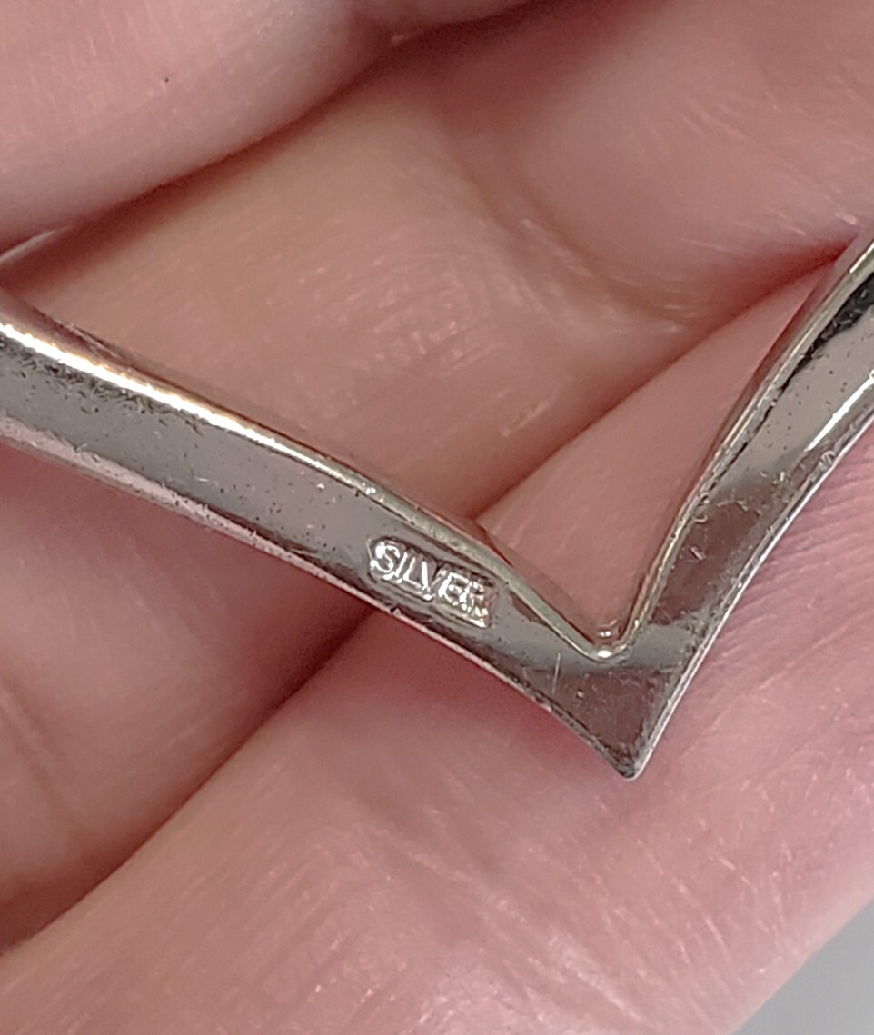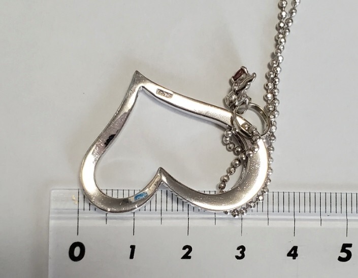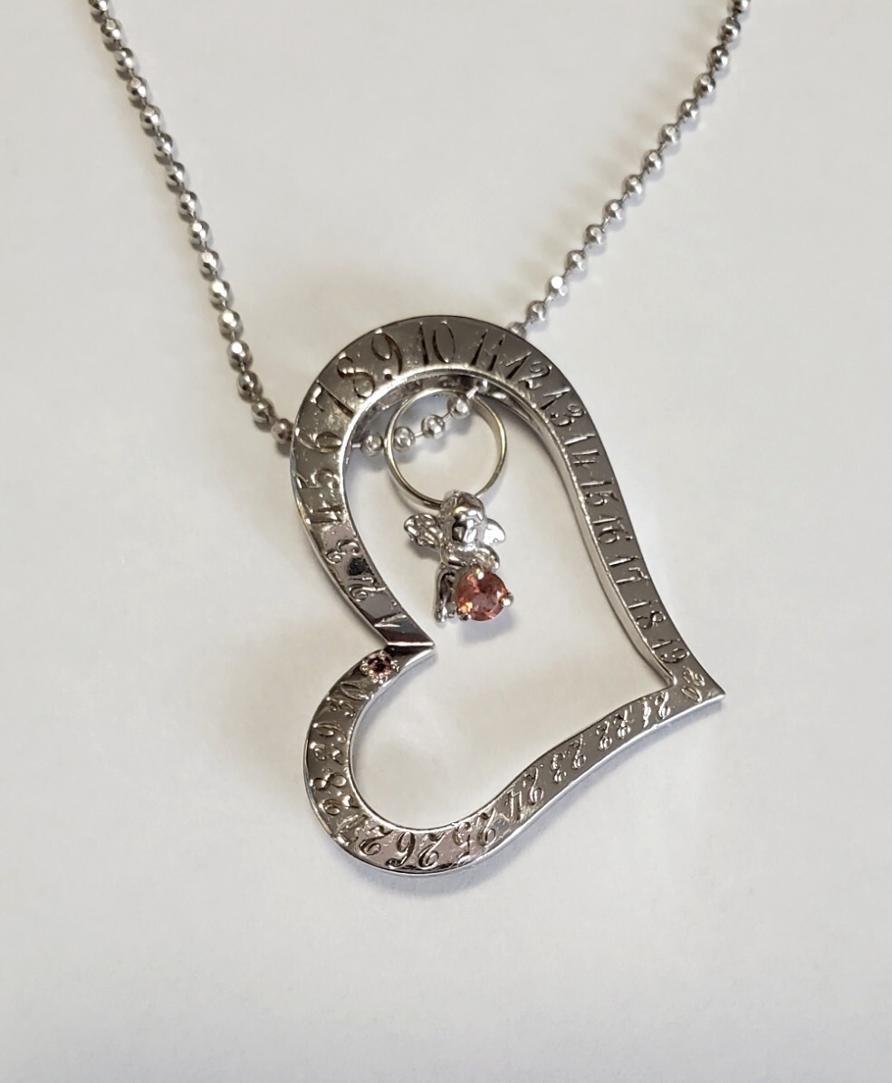 SILVER シルバー刻印 天然石 ハート 天使 ペンダントトップ ネックレス レディース アクセサリー 39㎝-43㎝ 9g 美品