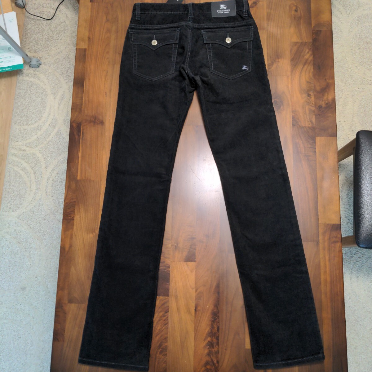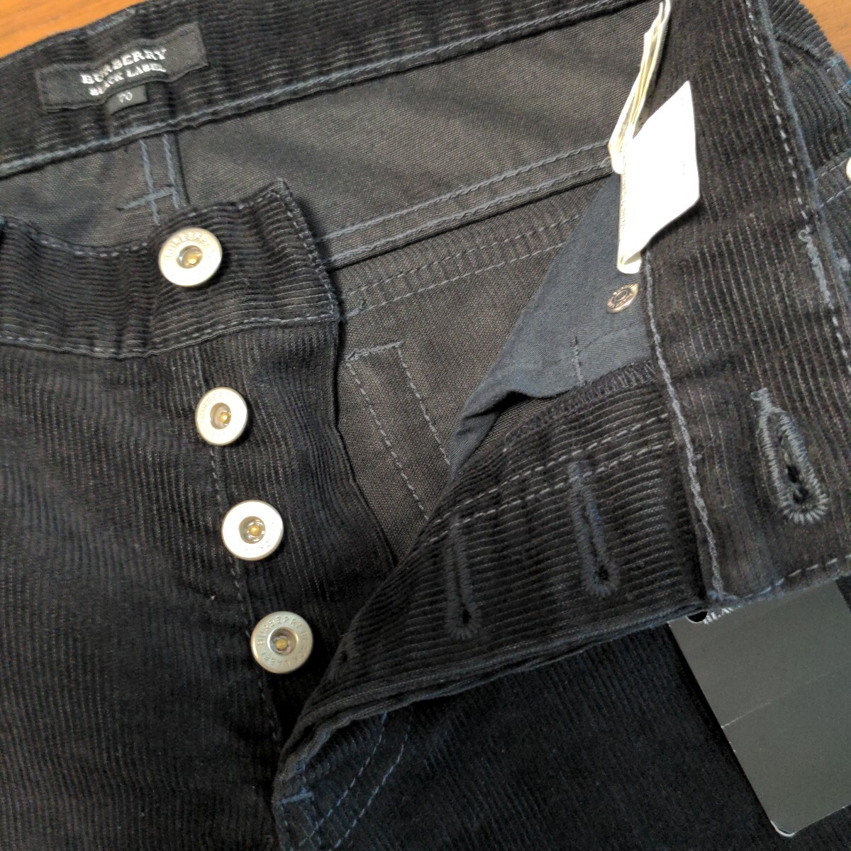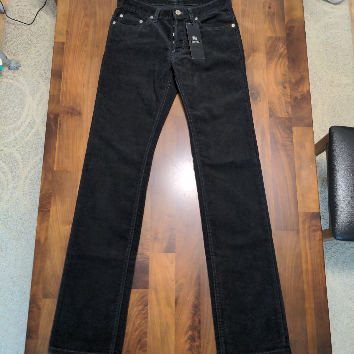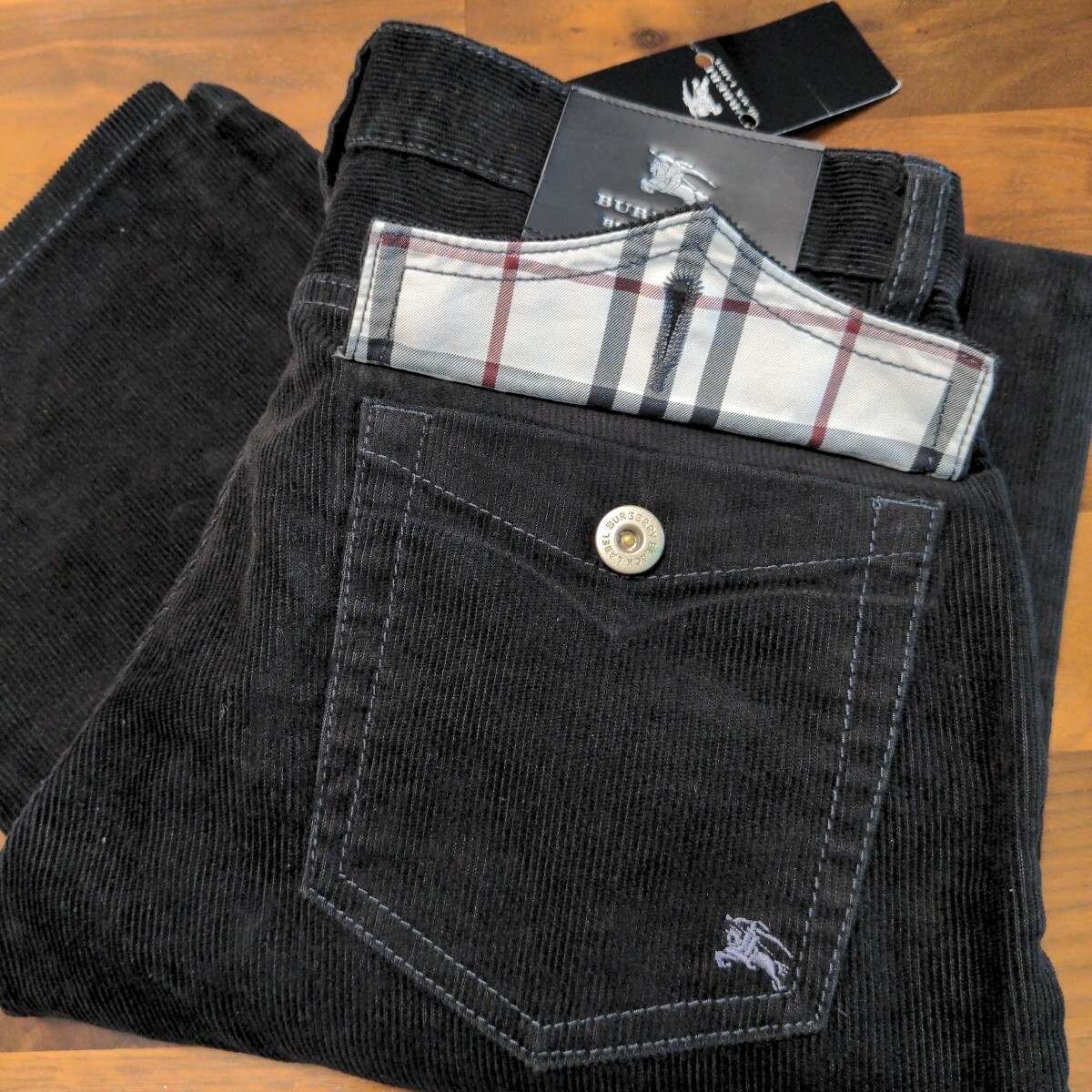 ★2015年に生産を終了したバーバリーブラックレーベルのコーデュロイ加工ジーンズ、こちらの商品は落ち着いた感じのブラックカラーです。ポリウレタン混のコーデュロイ素材でストレッチが効いた、保温性の高く程好いフィット感。リアポケット内側にはホワイトノヴァチェック柄とシルバーナイトホースマークロゴ、フロントはボタンフライ仕様で全てのボタンとリベット各種にブランドロゴを施してある等、細部にまで細かい仕上がりです。裾上げは施しておりません(股下約83cm)のでお好きな長さに仕上げるコトが可能。タイトなサイズ70新品未使用現品限りの商品となります。