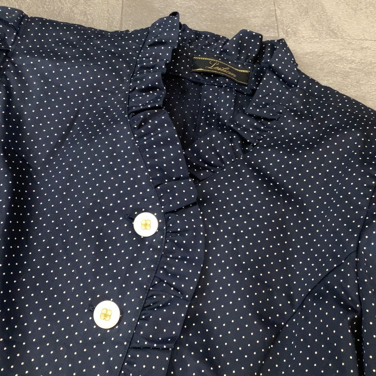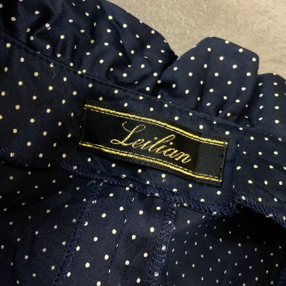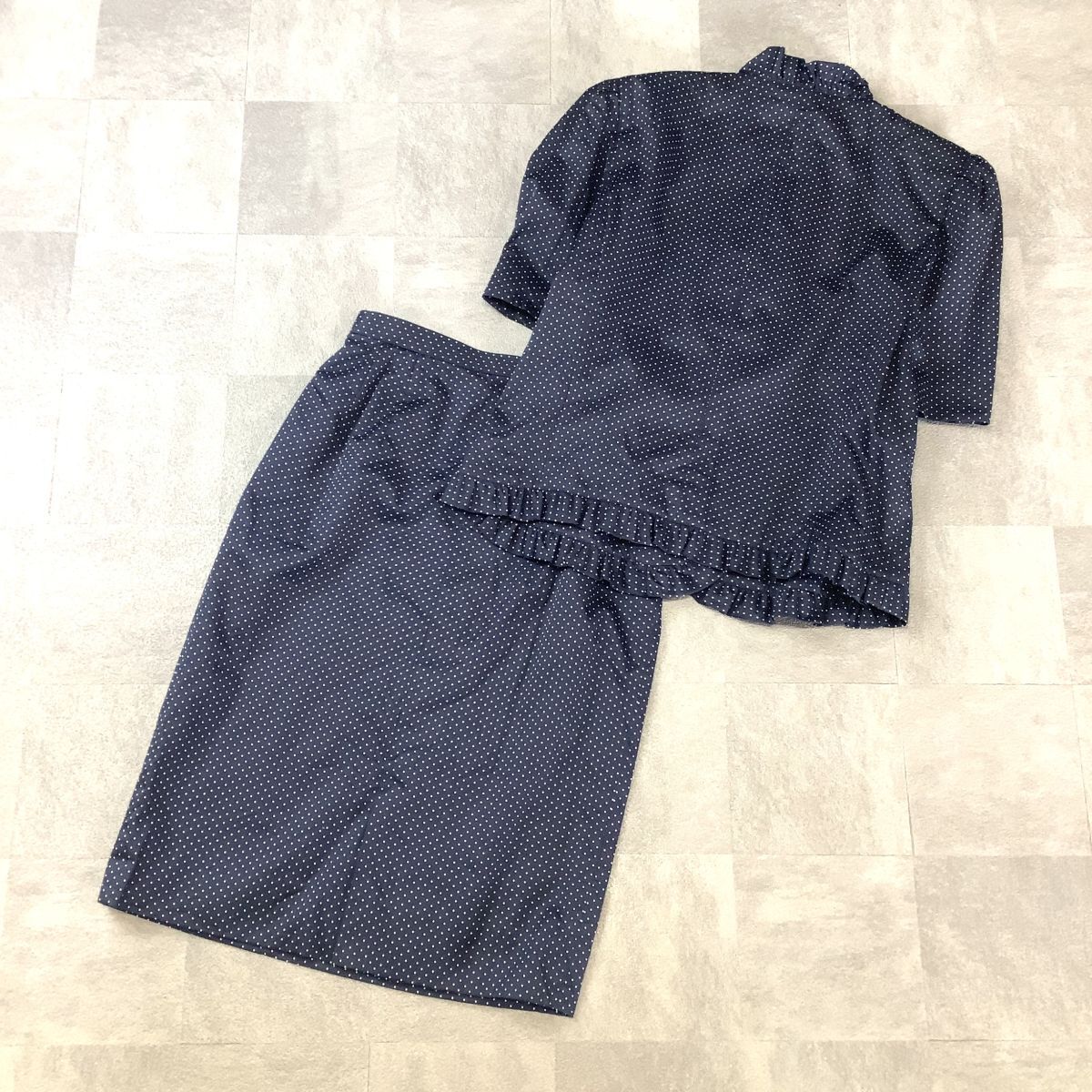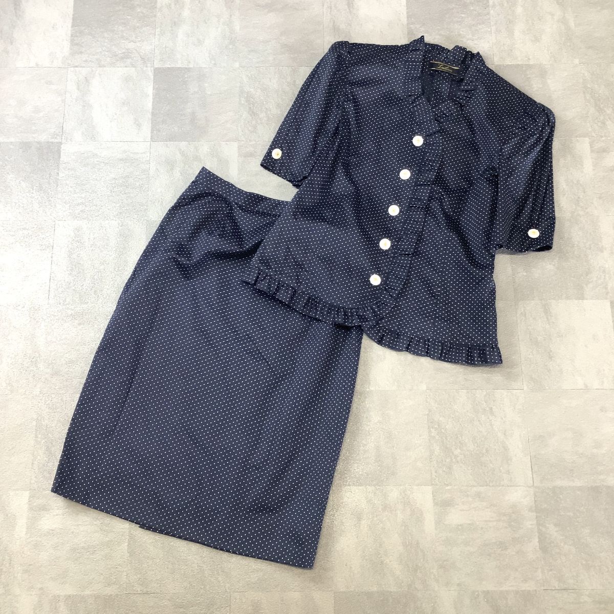 美品 Leilian レリアン ドット柄 半袖 サマージャケット 上下セットアップ レディース 7号 ネイビー
