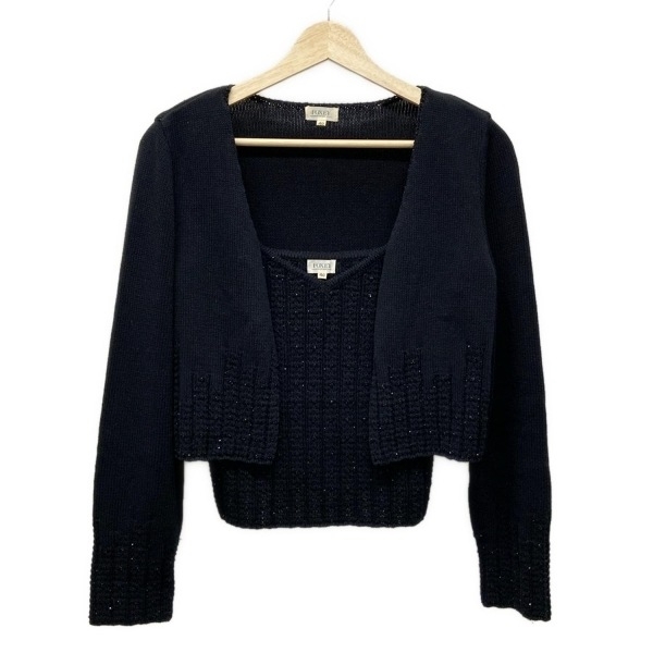 フォクシー FOXEY アンサンブル - 黒 レディース ビーズ/Vネック/カーディガンセット 美品 トップス