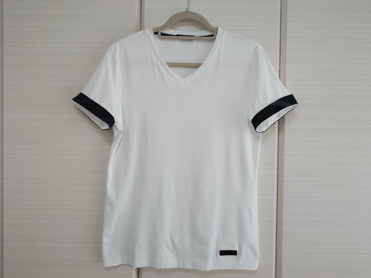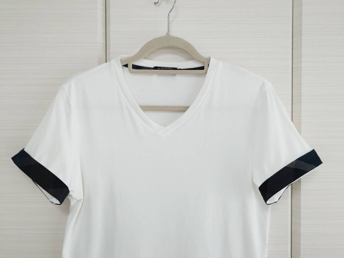 ★超美品 国内正規品 バーバリー ブラックレーベル コットンVネックTシャツ Mサイズ 白色 定価12100円★