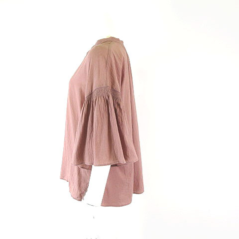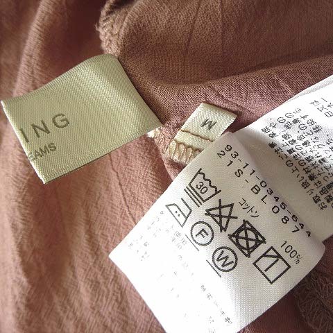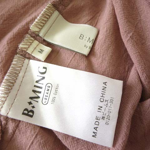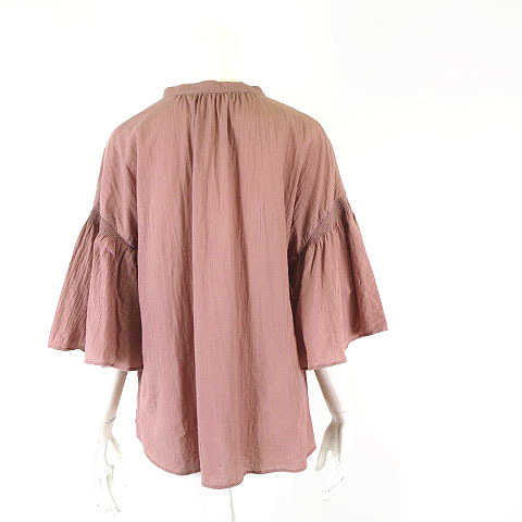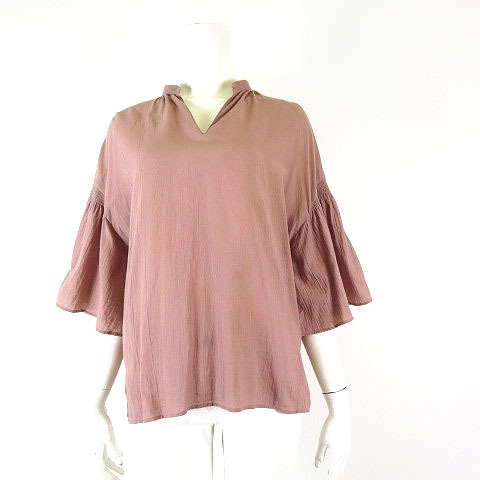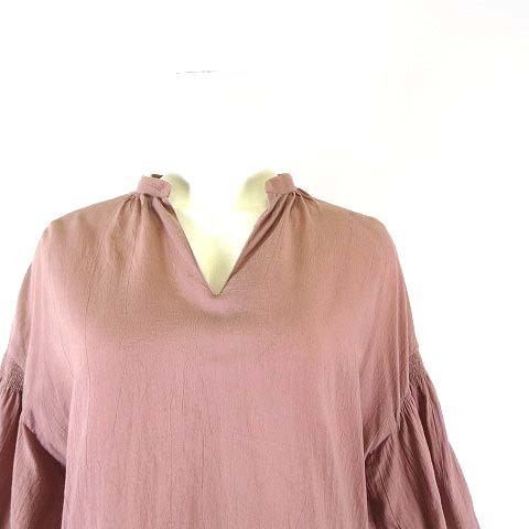 ビーミングバイビームス ブラウス プルオーバー 薄手 コットン ボイル スリットネック フレアスリーブ 7分袖 M くすみピンク