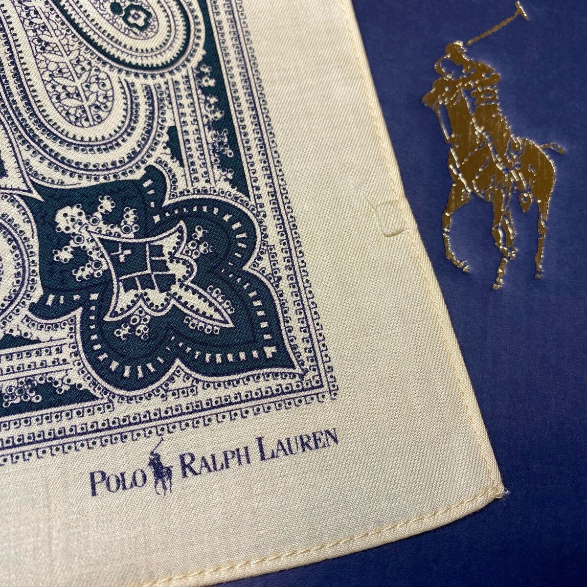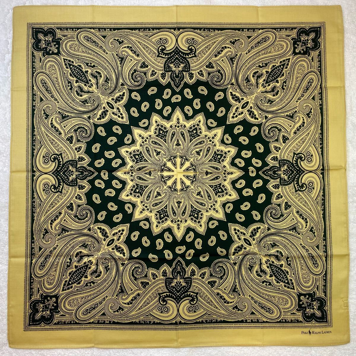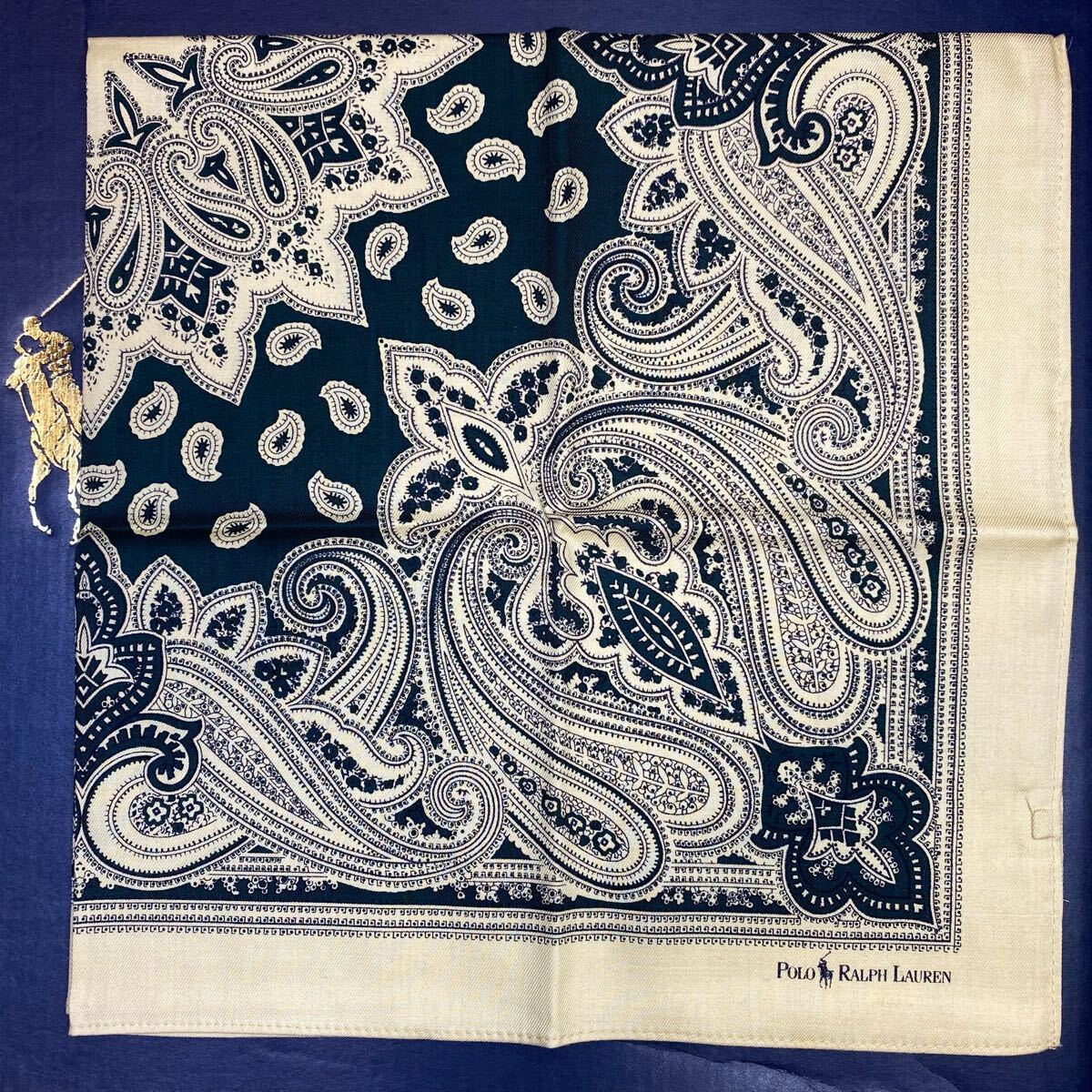 レア90s Vintage新品未使用川辺日本製ラルフローレンPolo Ralph Laurenペーズリー&ペルシャアラベスク文様 無地フレーム ハンカチ バンダナ