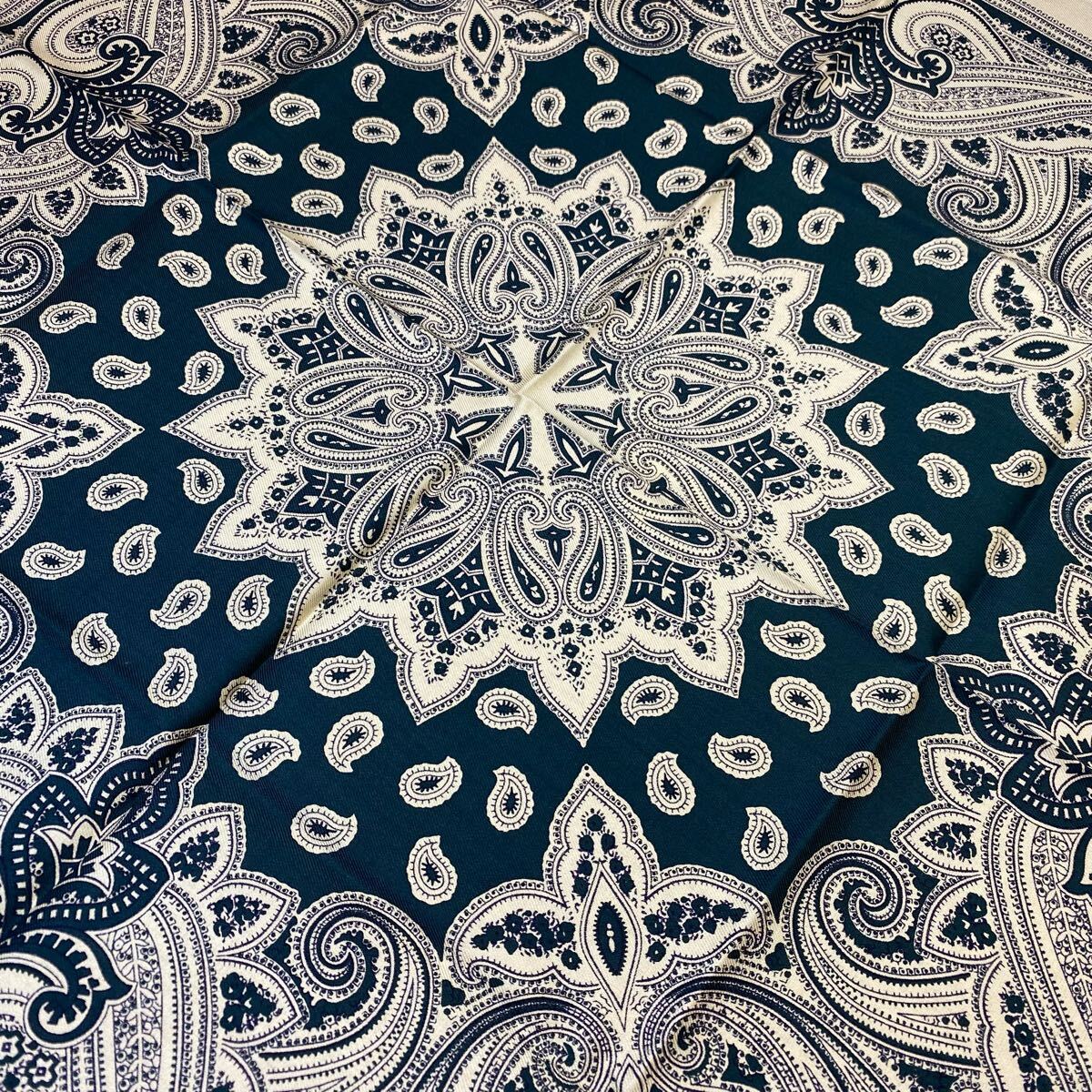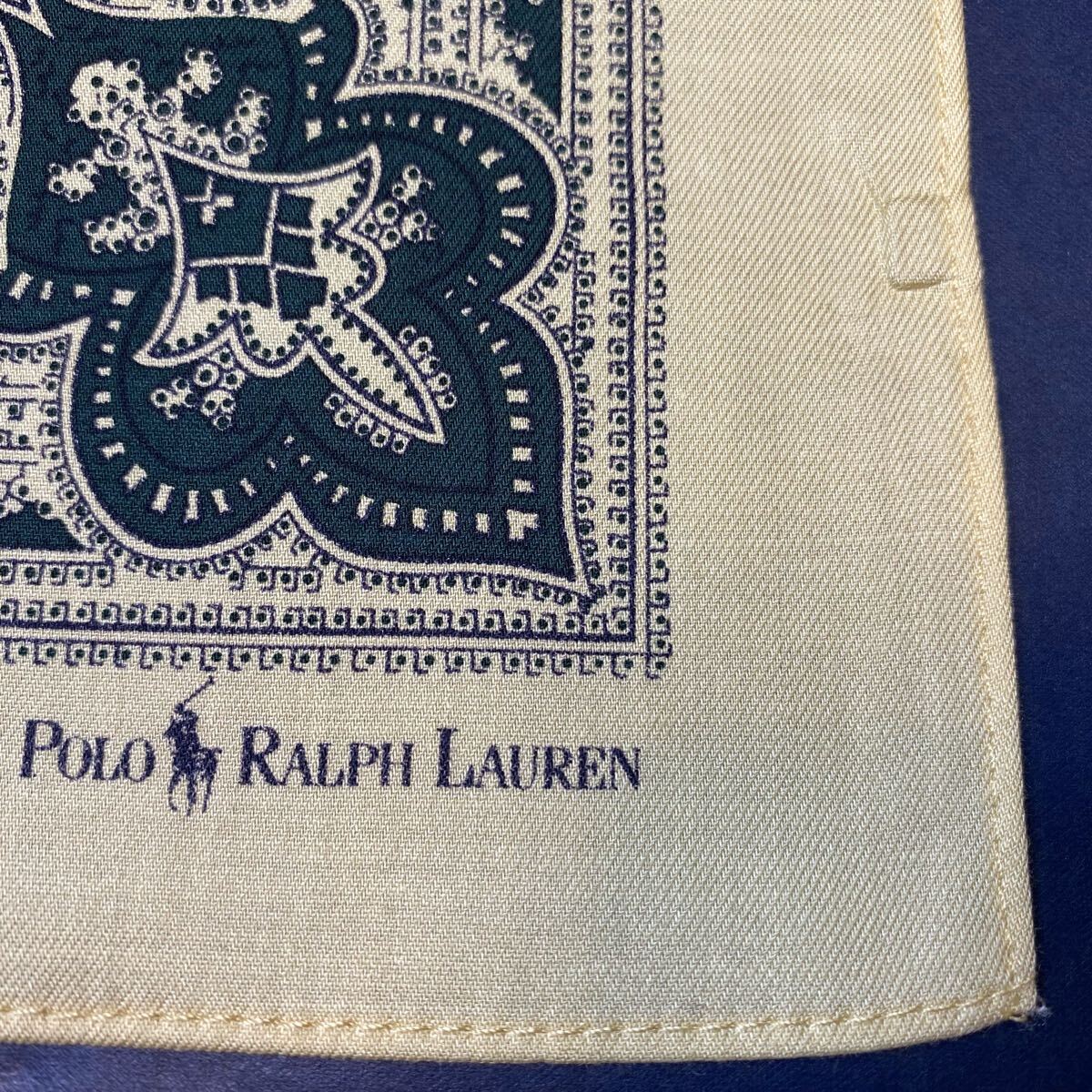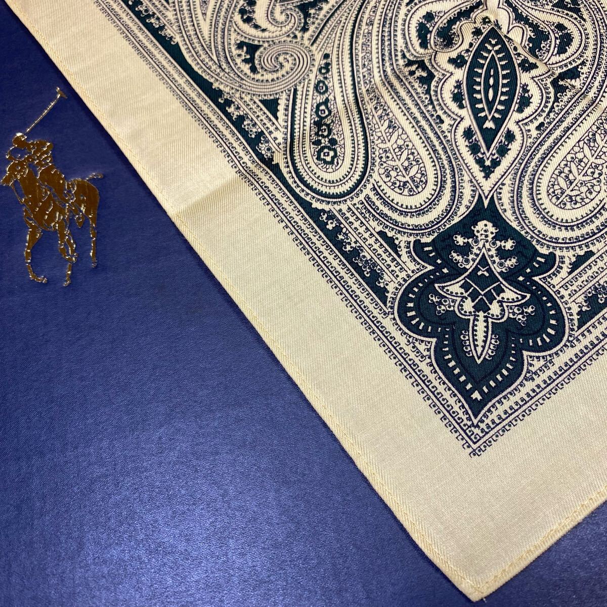 レア90s Vintage新品未使用川辺日本製ラルフローレンPolo Ralph Laurenペーズリー&ペルシャアラベスク文様 無地フレーム ハンカチ バンダナ