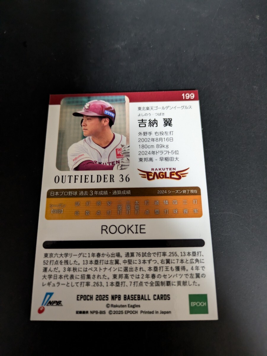 即決★EPOCH2025 楽天イーグルス 吉納翼 ルーキーカード